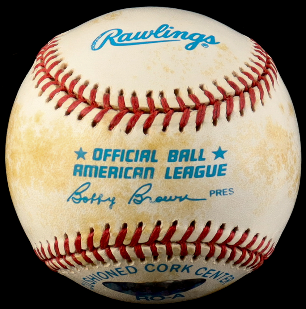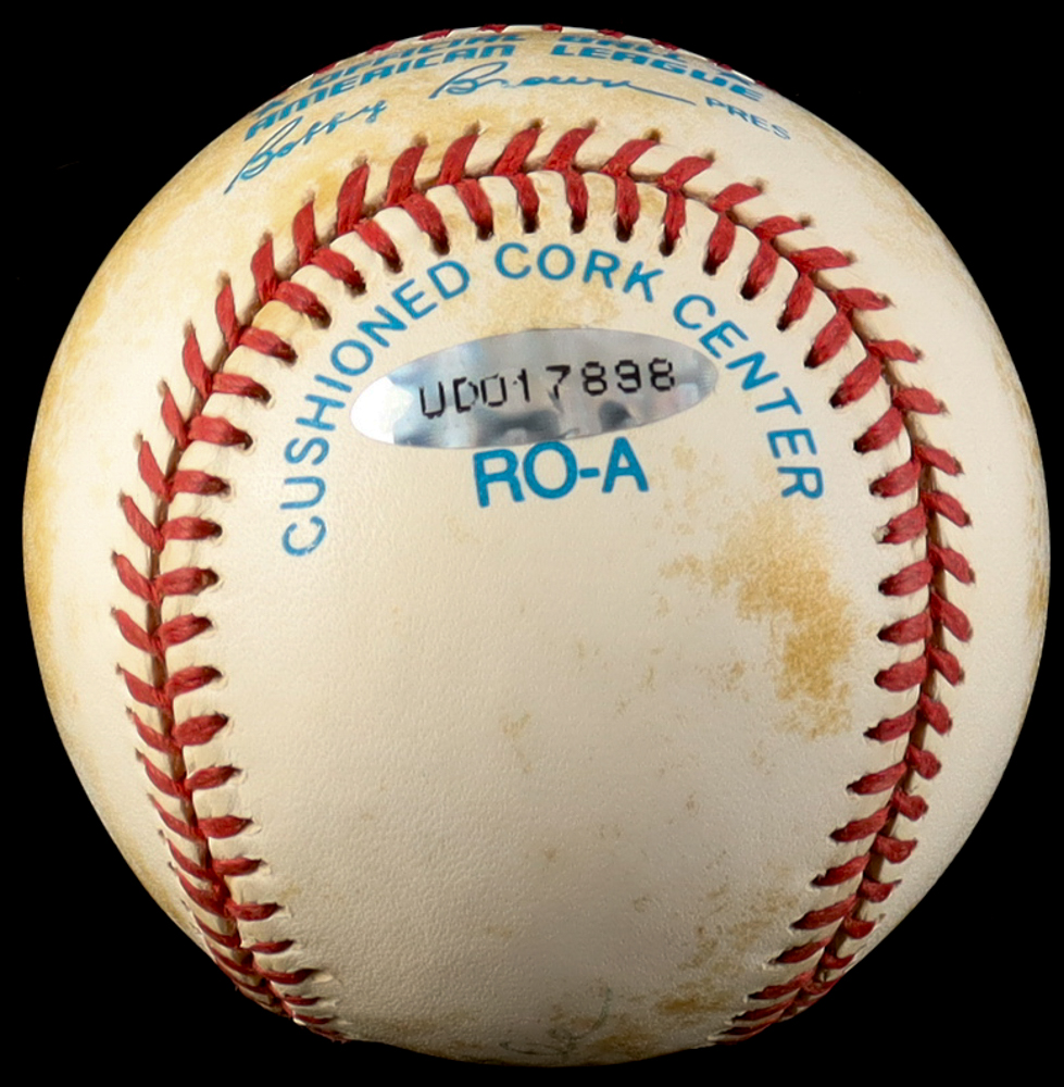 Rawlings Official American League baseball has been hand-signed by Mickey Mantle (D. 1995, New York Yankees, HOF).