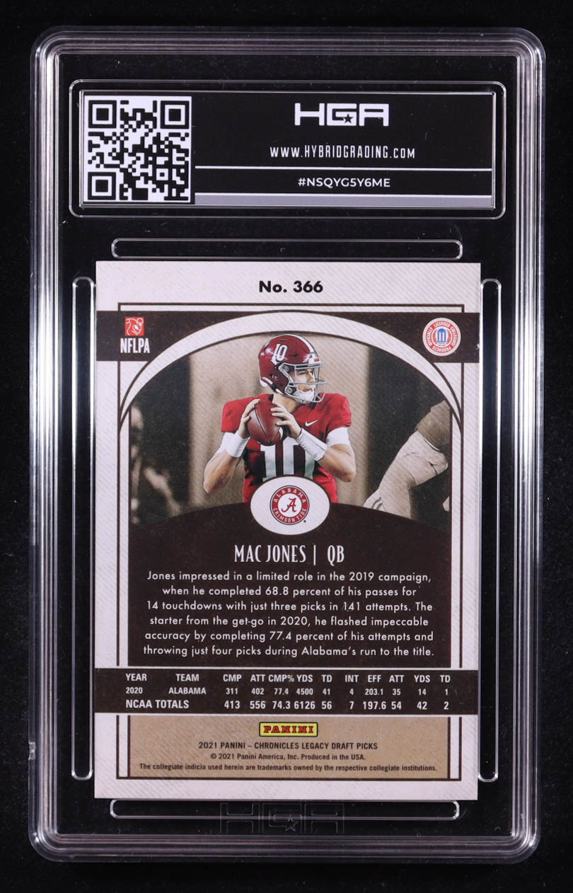 Mac Jones 2021 Panini Chronicles Draft Picks Legacy Rookies #366 RC (HGA 9.5)