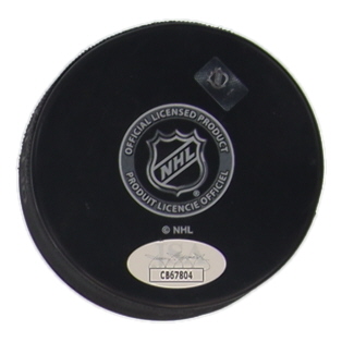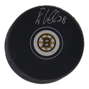 Elias Lindholm Signed Bruins Logo Hockey Puck (JSA)