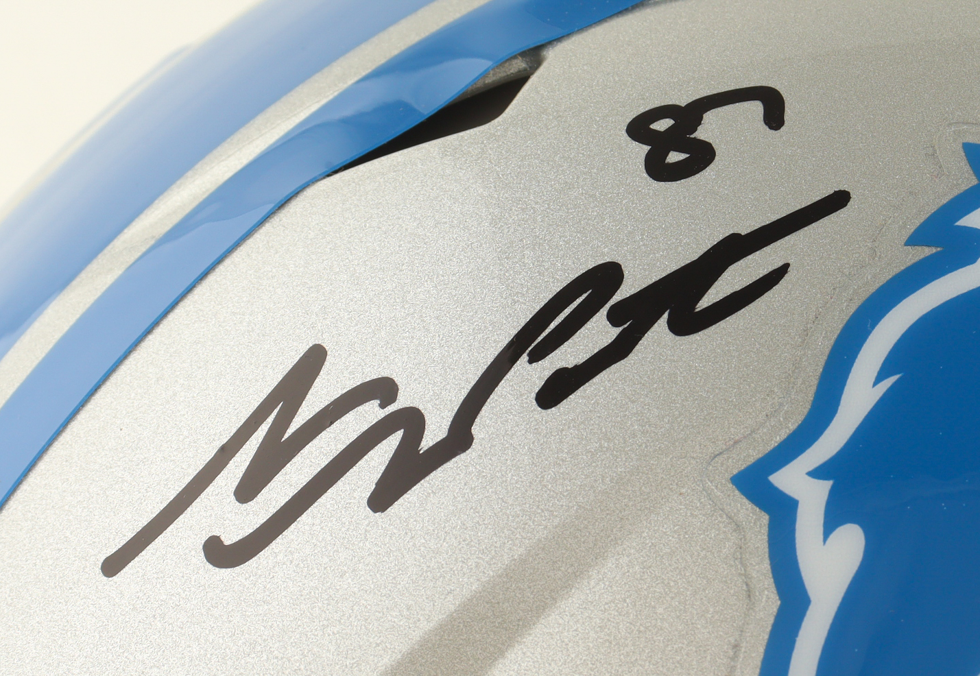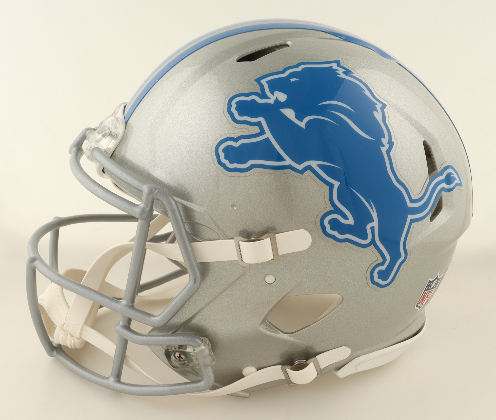 Riddell Detroit Lions full-size authentic on-field speed helmet has been hand-signed by Sam LaPorta.