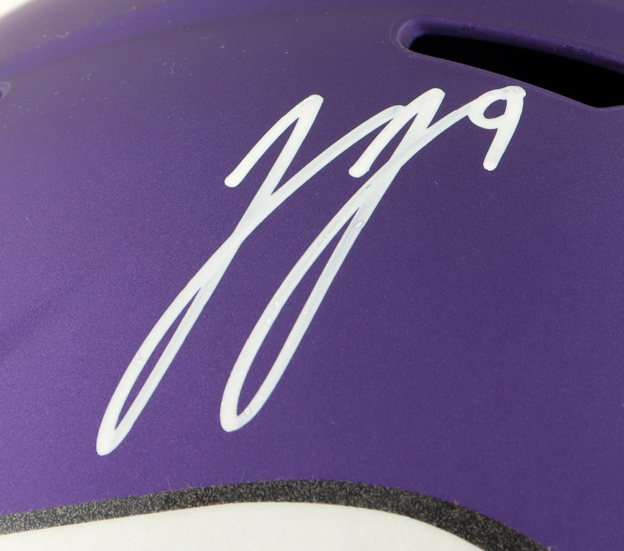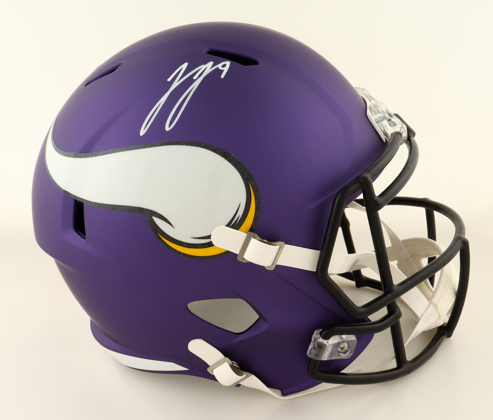Riddell Minnesota Vikings full-size speed helmet. Hand-signed by JJ McCarthy.