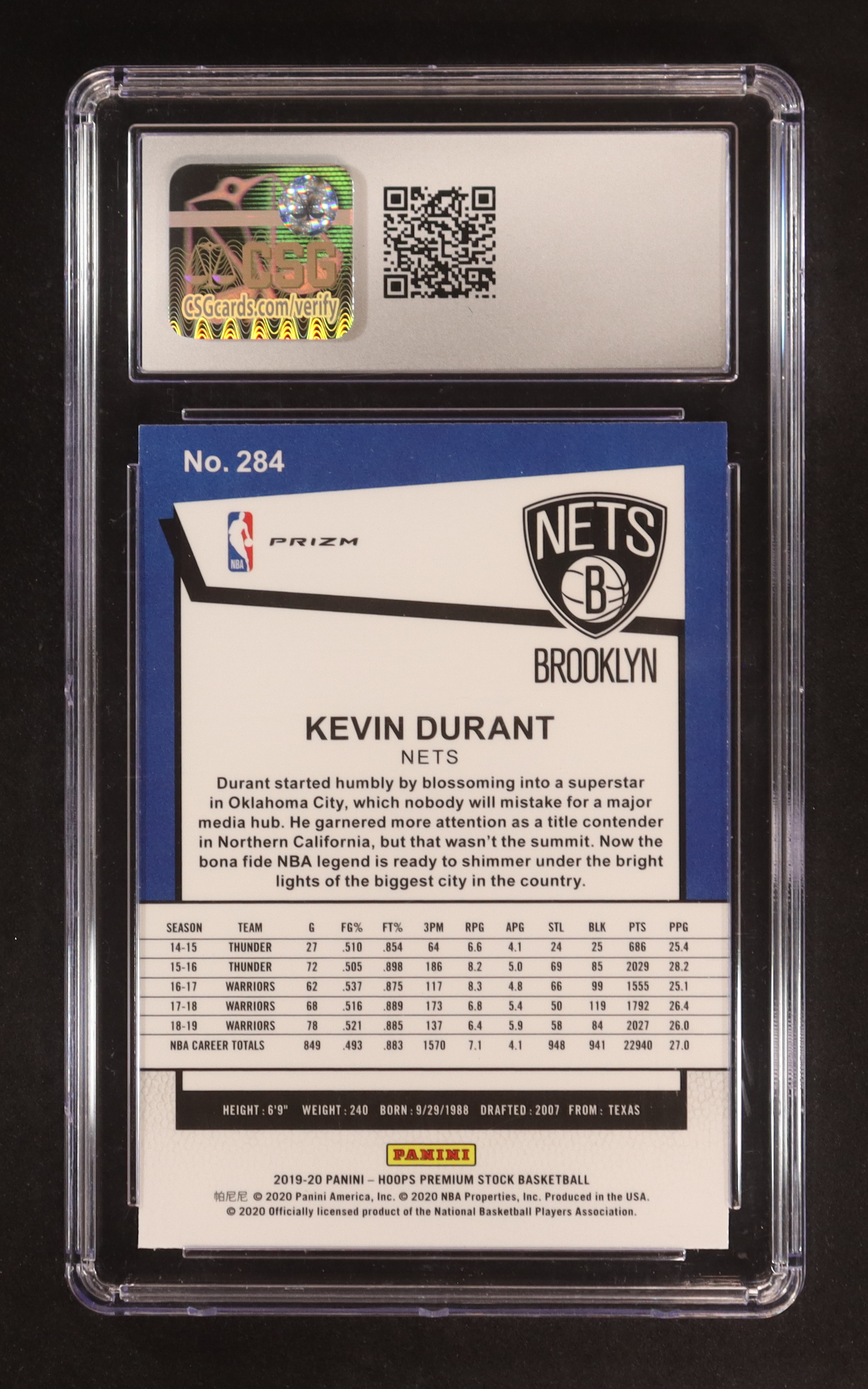 Kevin Durant 2019-20 Hoops Premium Stock Prizms Silver Laser #284 (CSG 10)