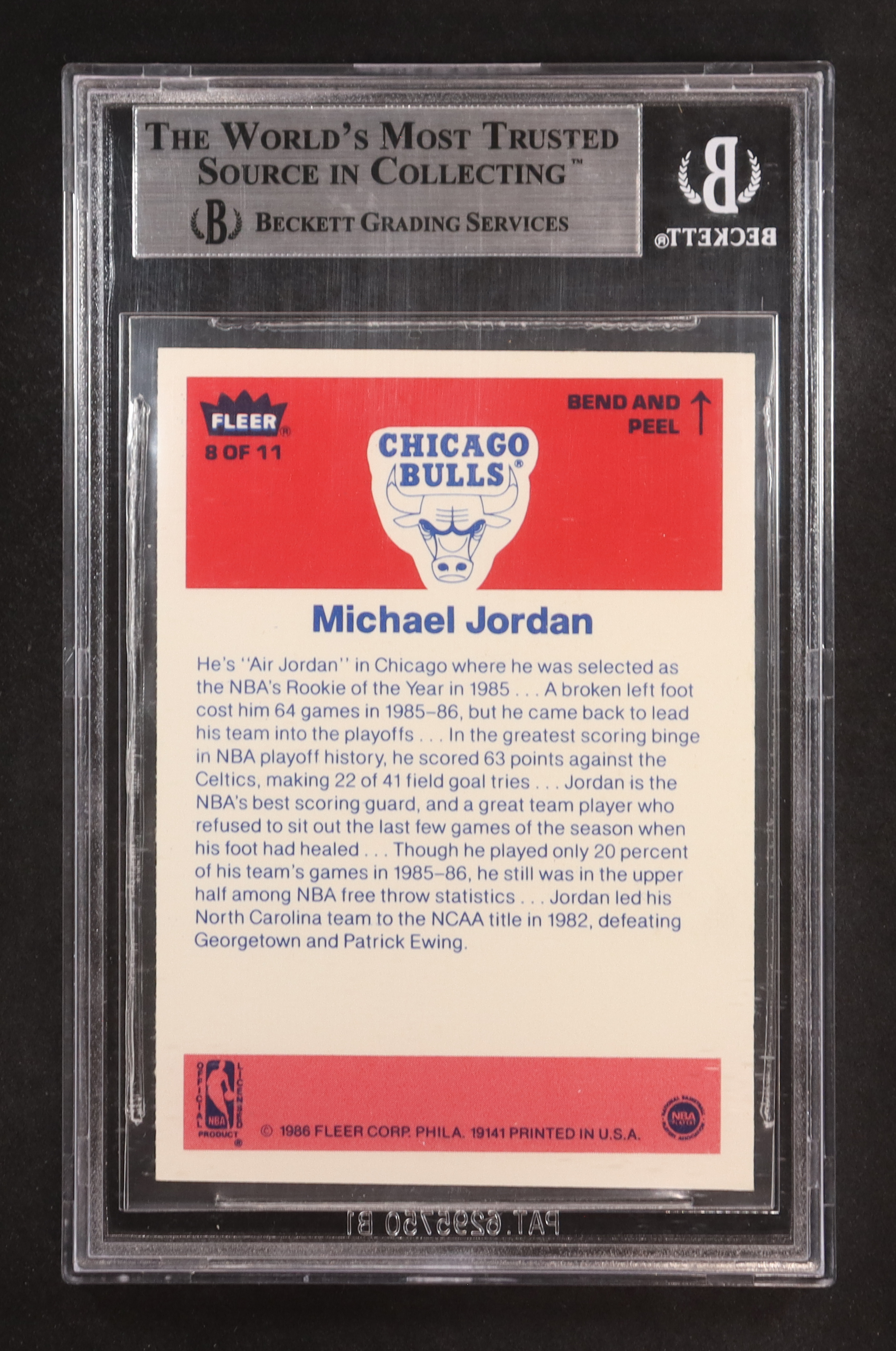 Michael Jordan 1986-87 Fleer Stickers #8 RC (BGS 8.5)