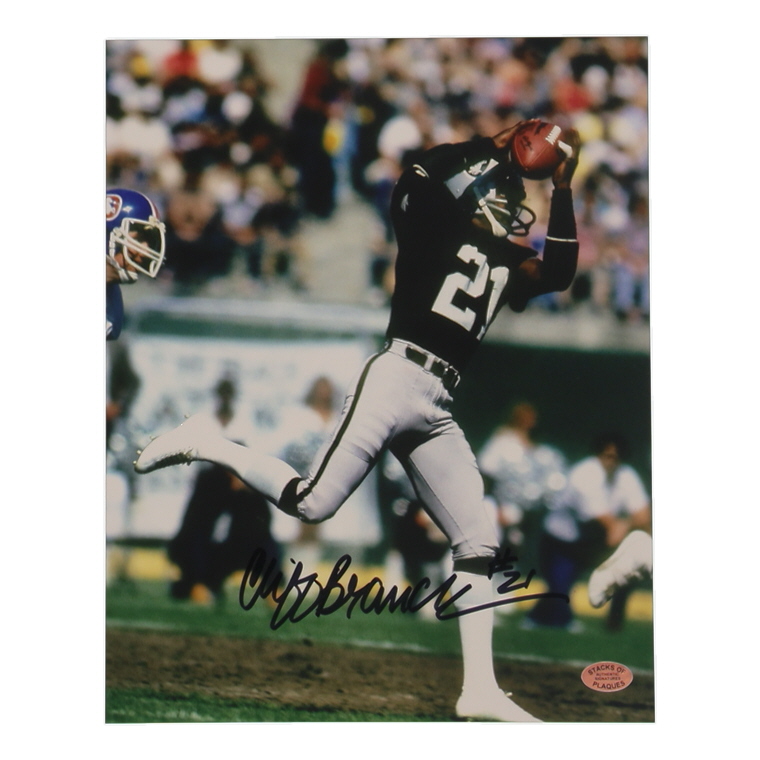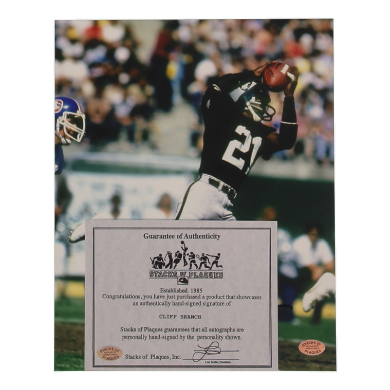 Photo measures 8" x 10" in size and has been hand-signed by Cliff Branch (D. 2019, Oakland Raiders, HOF).