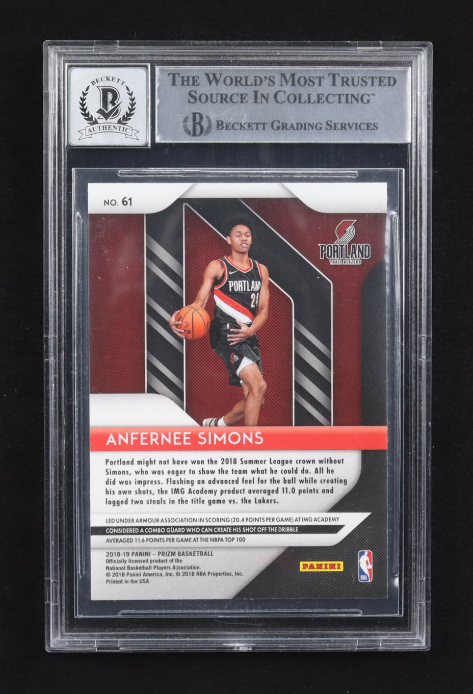 Anfernee Simons Signed Sticker On 2018-19 Panini Sticker Prizm #61 RC (BGS | Autograph Grade BGS 10)