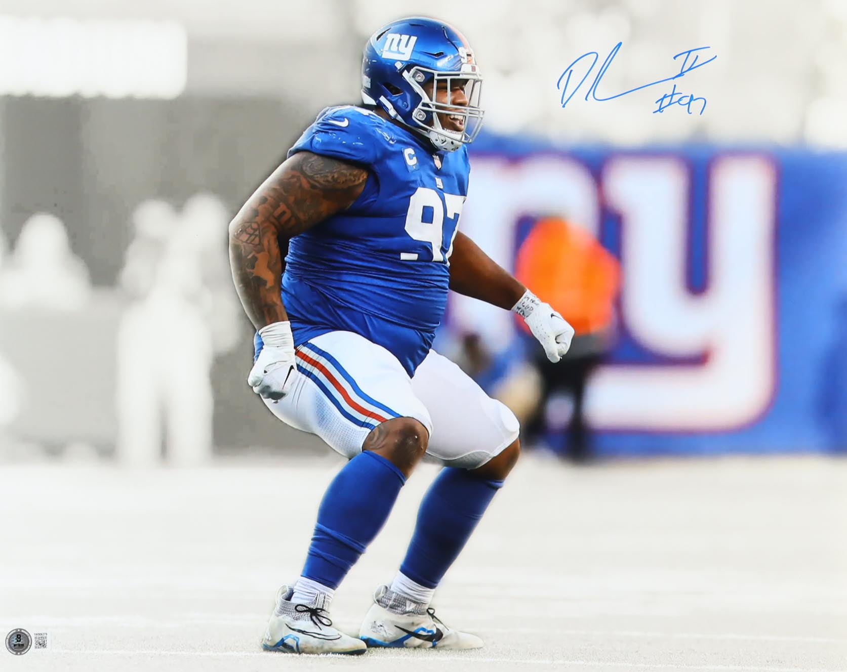 Photo measures 16" x 20" in size. Hand-signed by Dexter Lawrence (New York Giants).