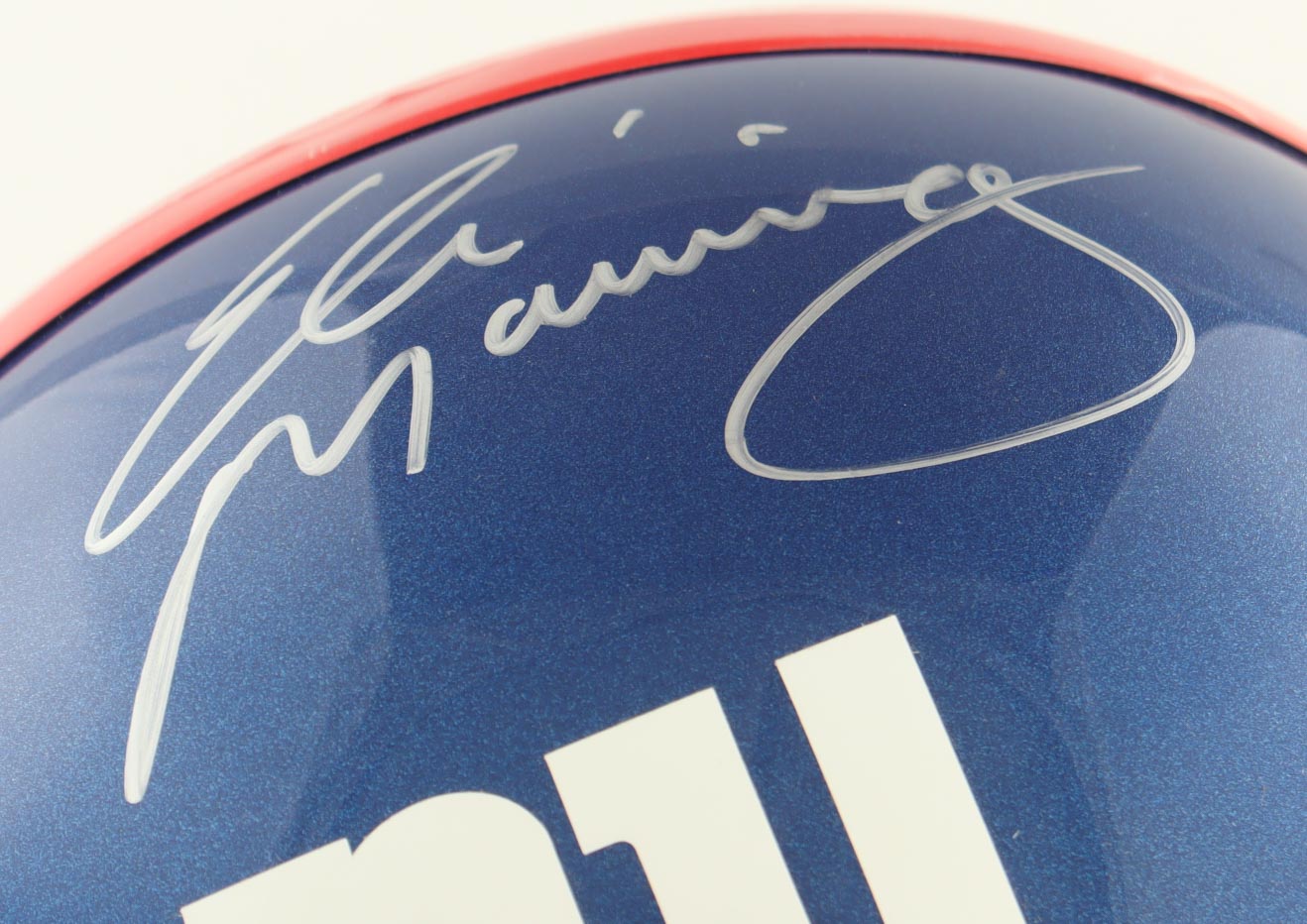 Riddell New York Giants full-size replica helmet. Hand-signed by Eli Manning.
