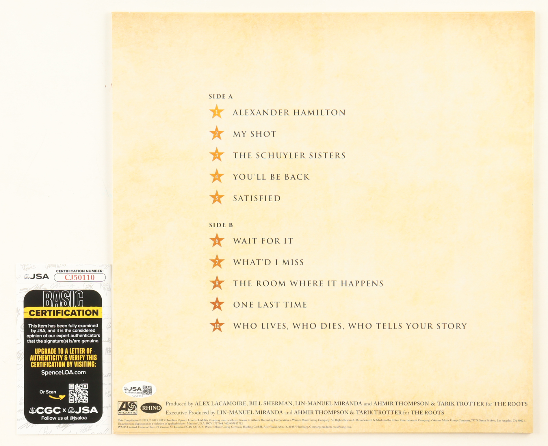 Lin Manuel Miranda Signed Hamilton "10 Shots" Vinyl Record Album (JSA)