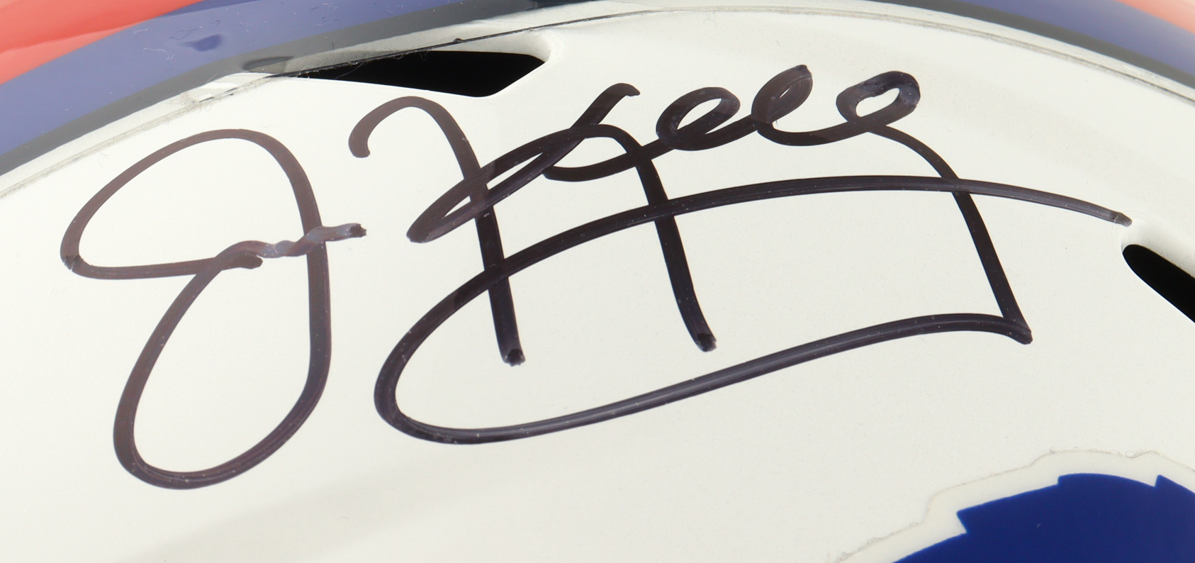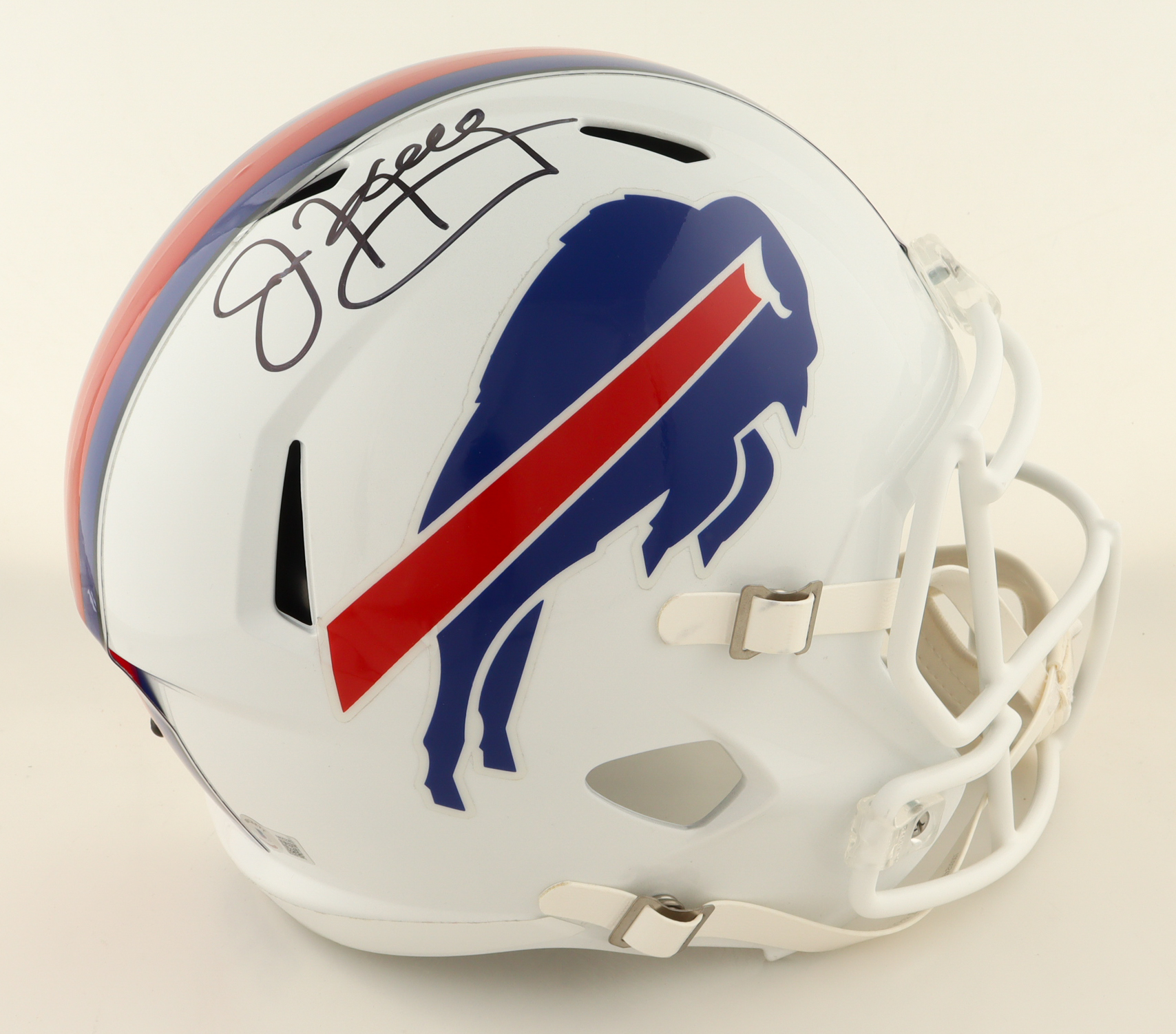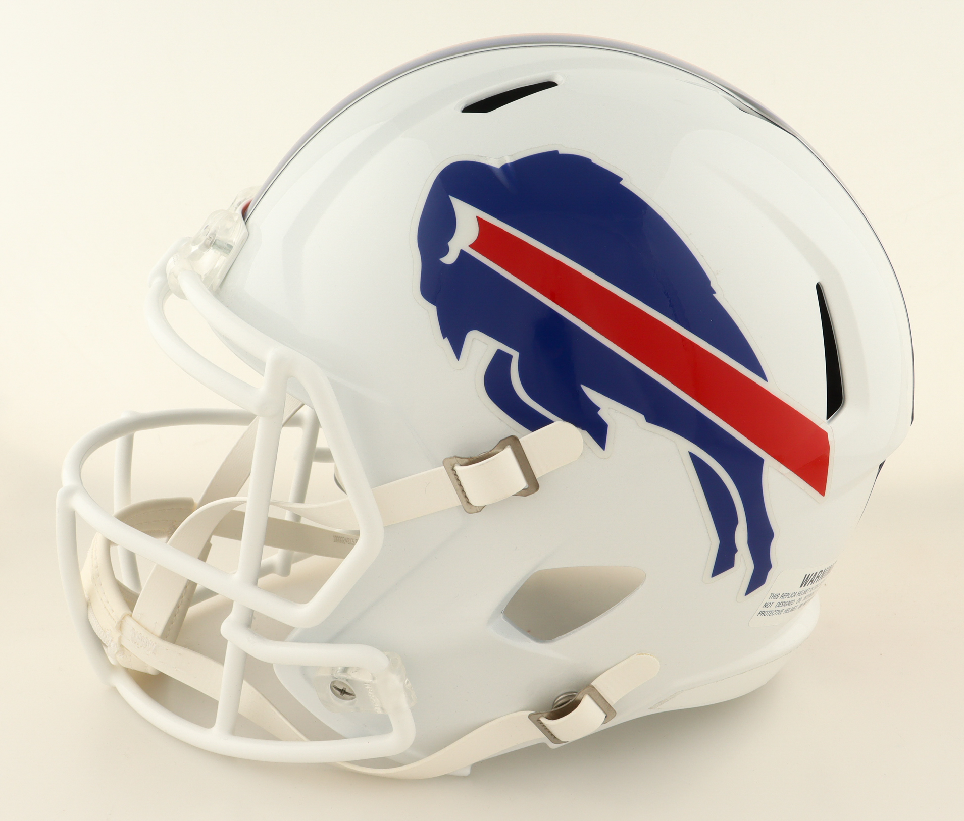 Riddell Buffalo Bills Full-Size replica Speed Helmet has been hand-signed by Jim Kelly.