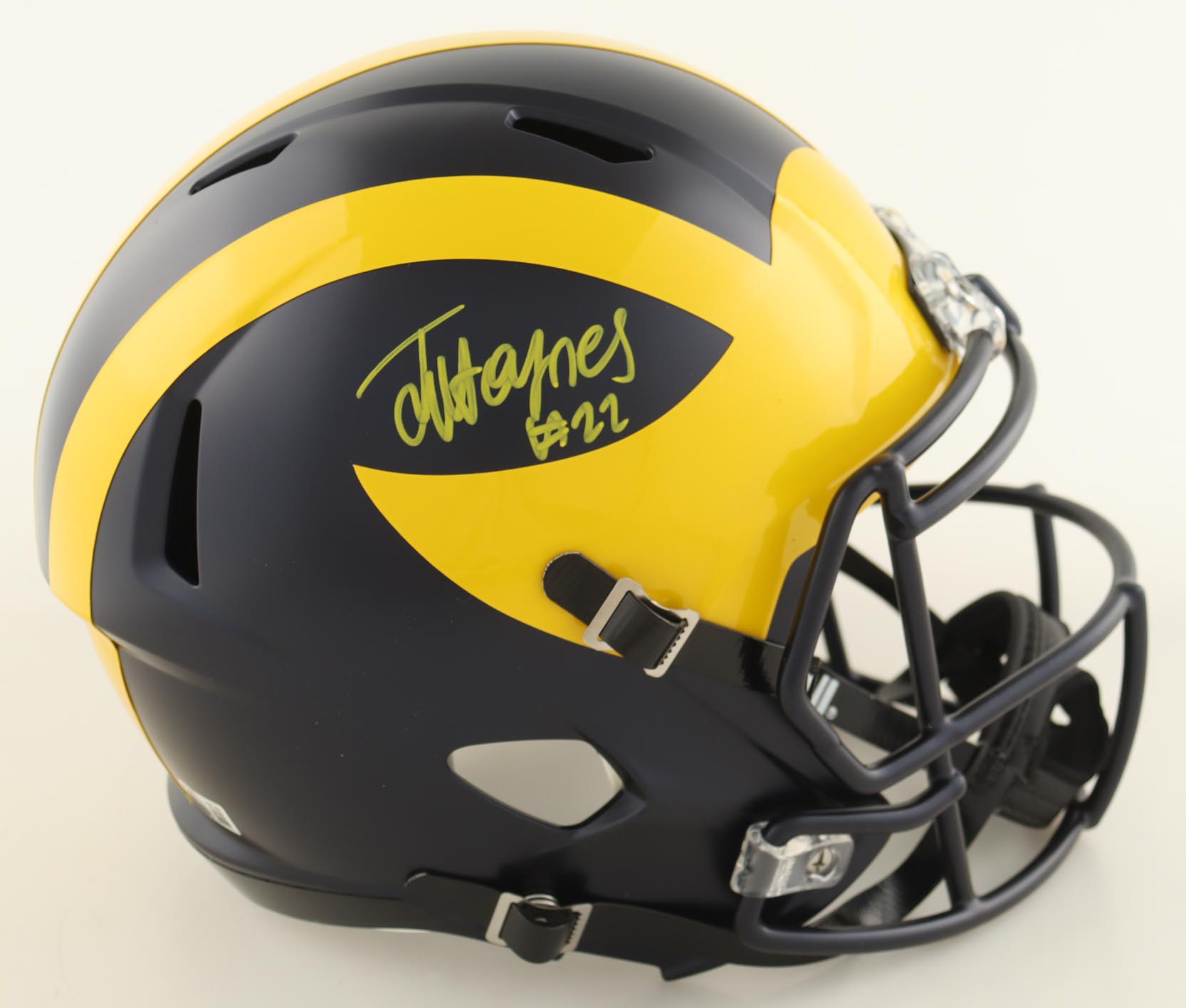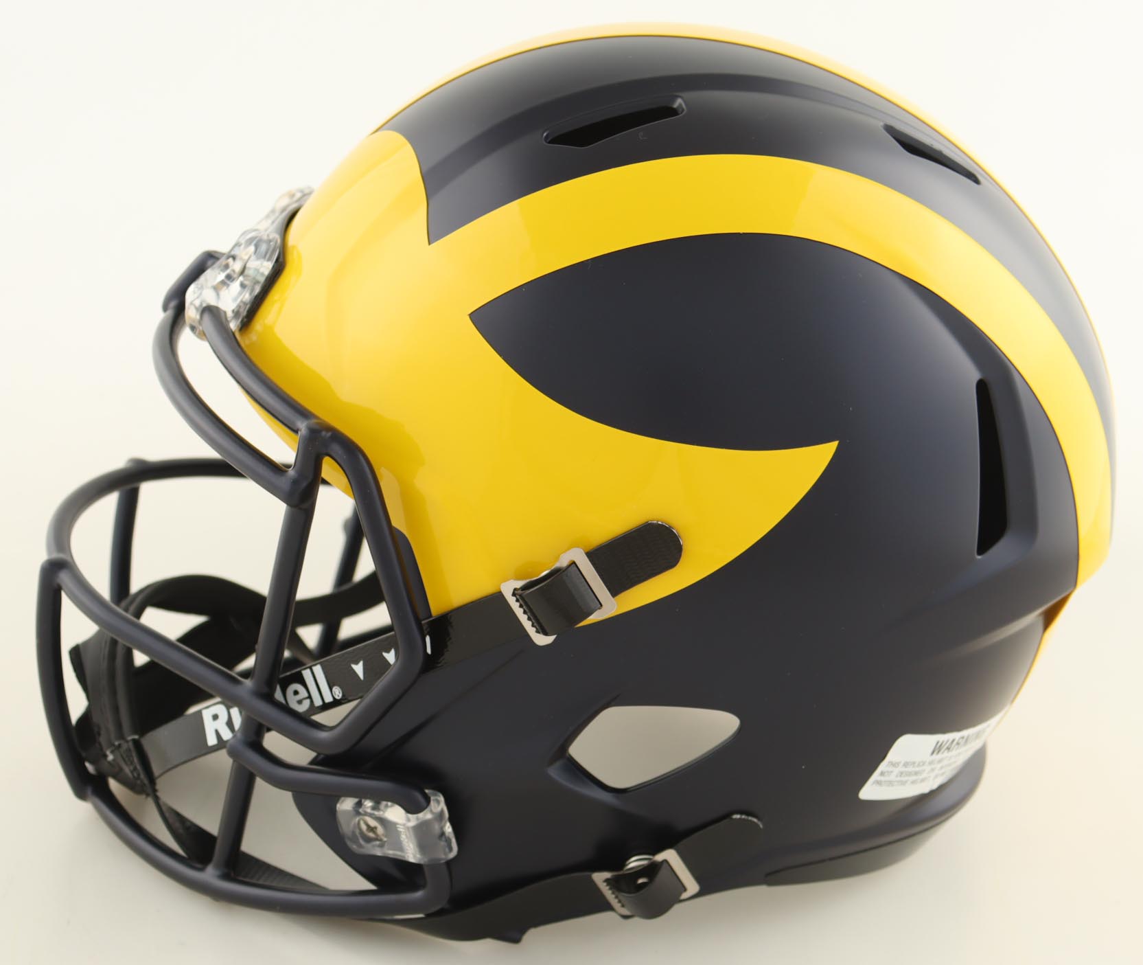 Riddell Michigan Wolverines full-size replica Speed helmet. Hand-signed by Justice Haynes.