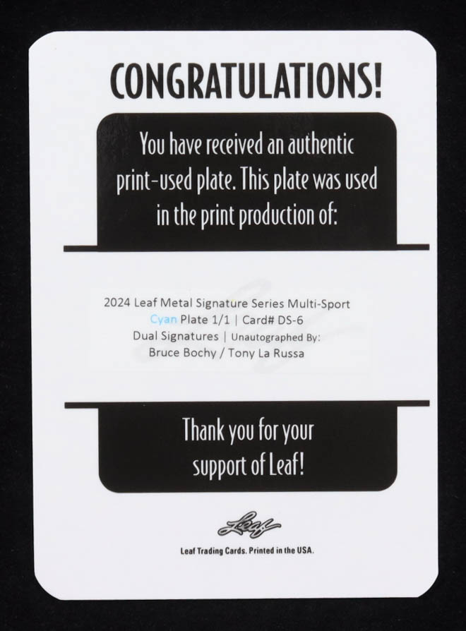 Bruce Bochy / Tony La Russa 2024 Leaf Metal Signature Series Multi-Sport Cyan Plate #DS6 #1/1