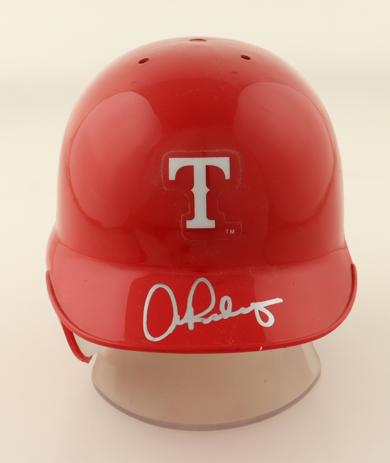 Rawlings Texas Rangers baseball batting mini helmet. Hand-signed by Alex Rodriguez.