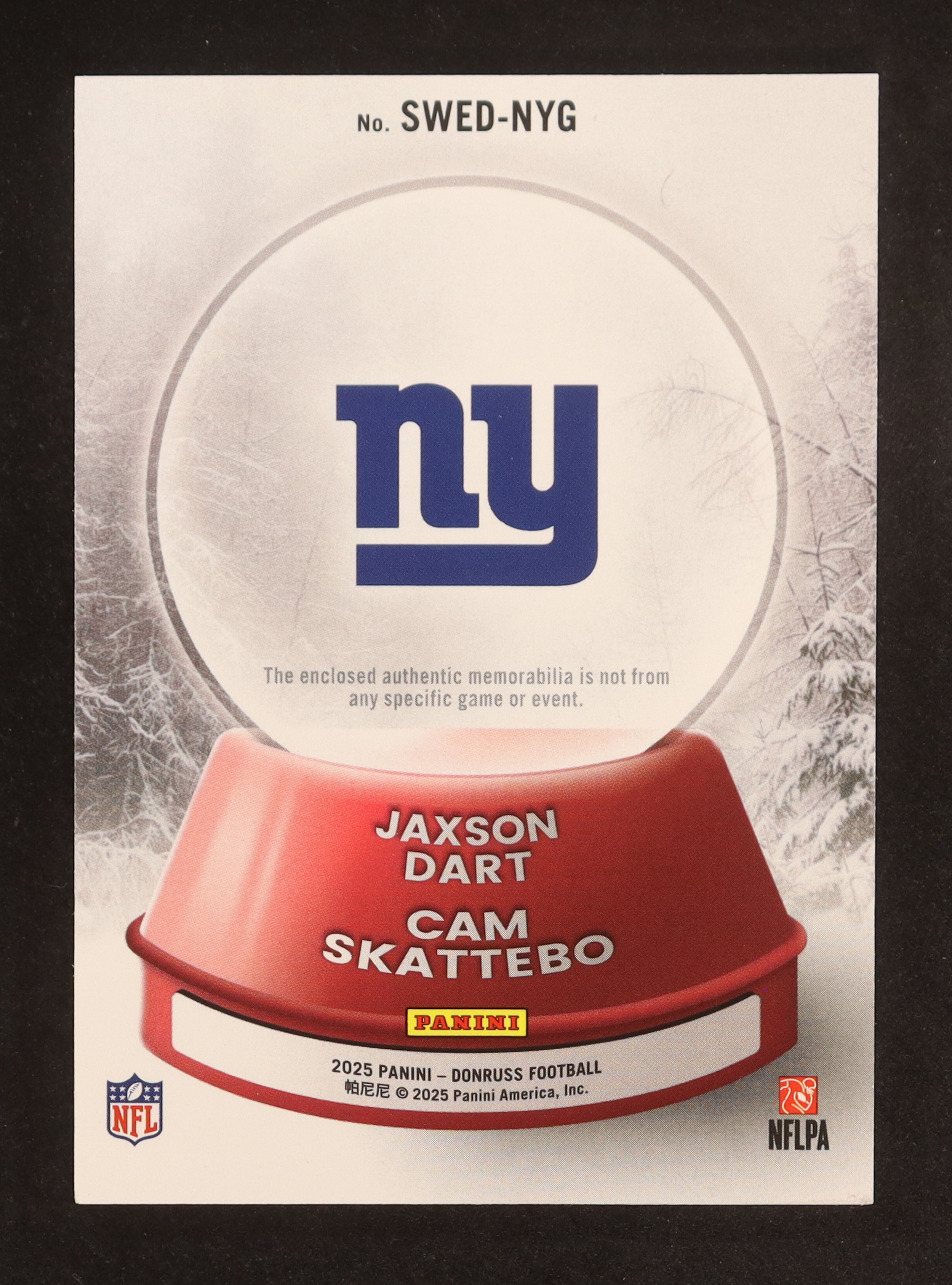 Cam Skattebo / Jaxson Dart 2025 Donruss Rookie Holiday Sweater Dual #3 RC