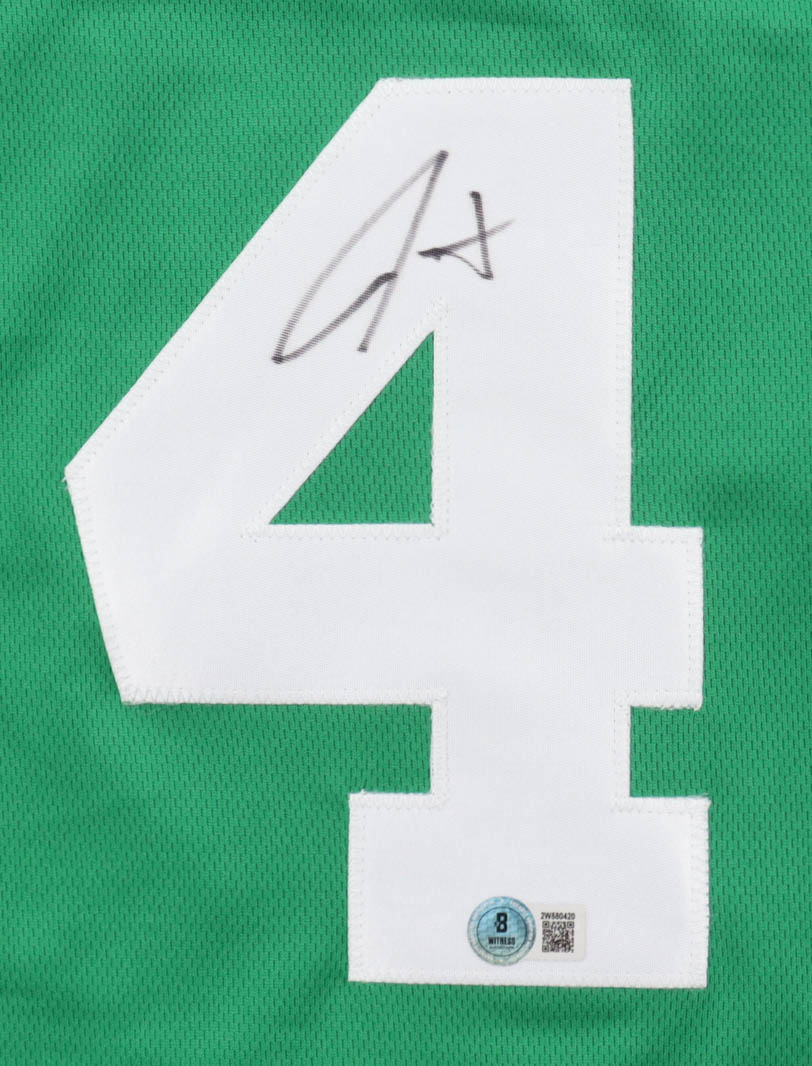 Custom jersey with everything sewn on, size XL. Hand-signed by Jrue Holiday.