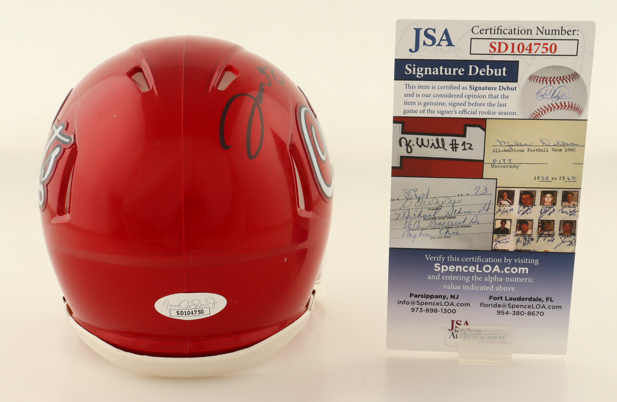 The autograph(s) includes an official James Spence Authentication (JSA) "Signature Debut" hologram and COA. "Signature Debut" is the autographed memorabilia equivalent to a rookie card. The JSA definition of a "Signature Debut" is as follows: "Any item that is autographed and received by JSA prior to the last game of the signer's official rookie season.