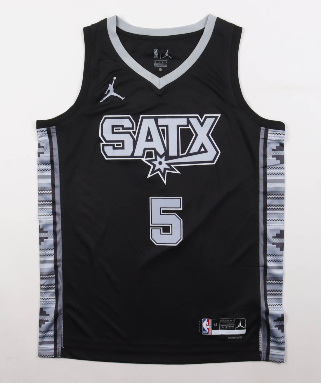 Jordan jersey. Everything is pressed on, size 48. Hand-signed by Stephon Castle (San Antonio Spurs).