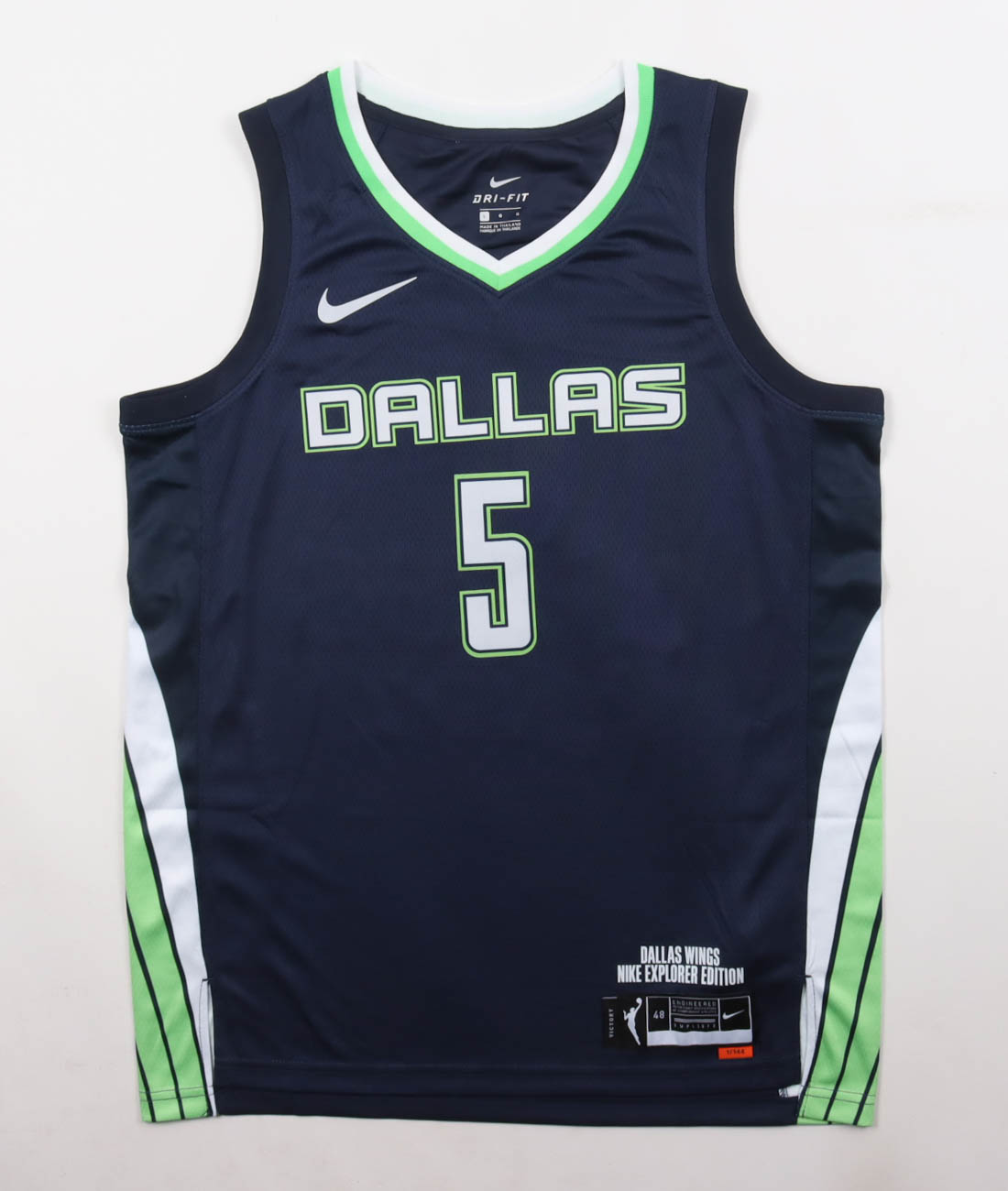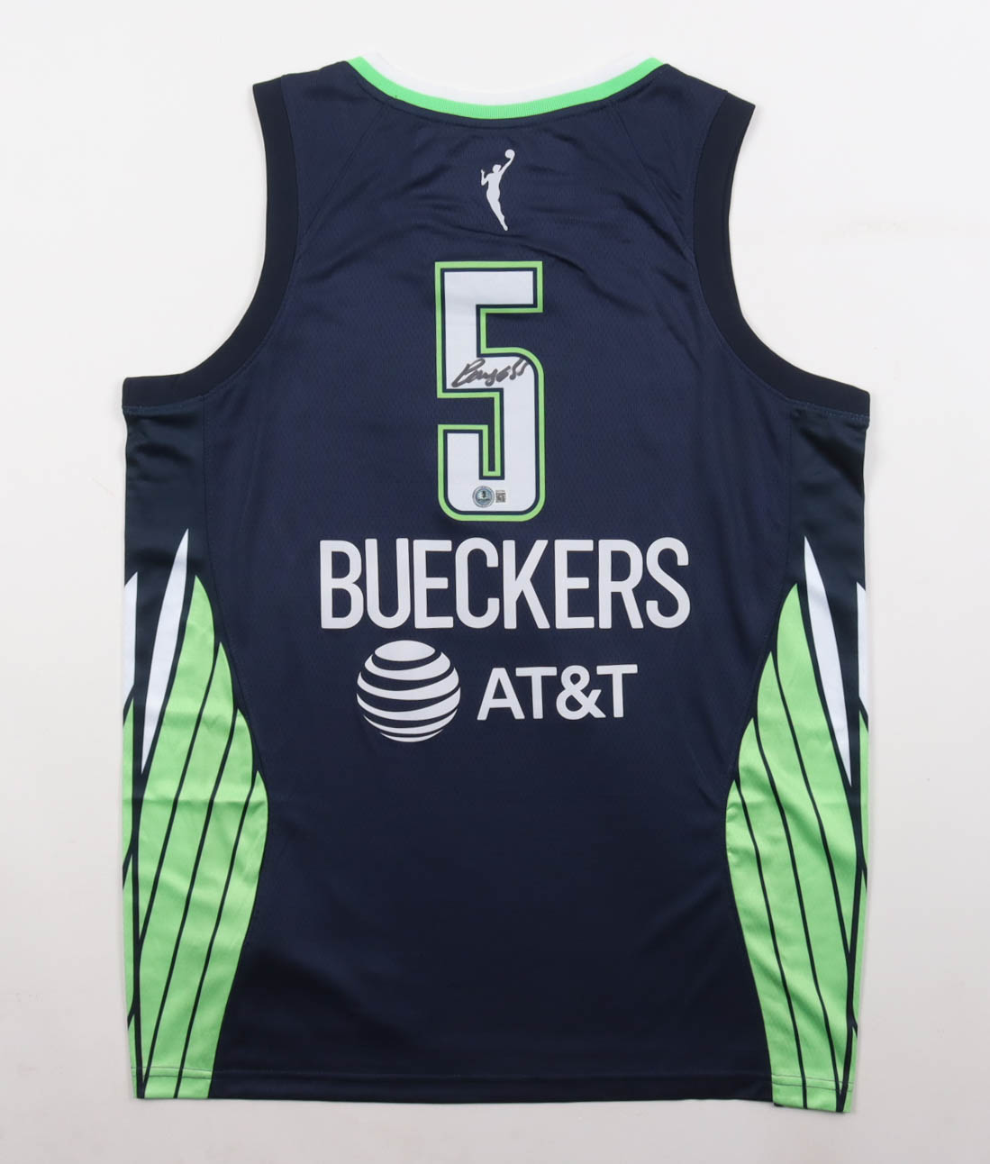 Nike authentic jersey with everything pressed on, size 48. Hand-signed by Paige Bueckers (Dallas Wings).