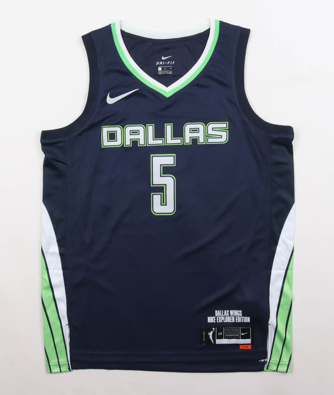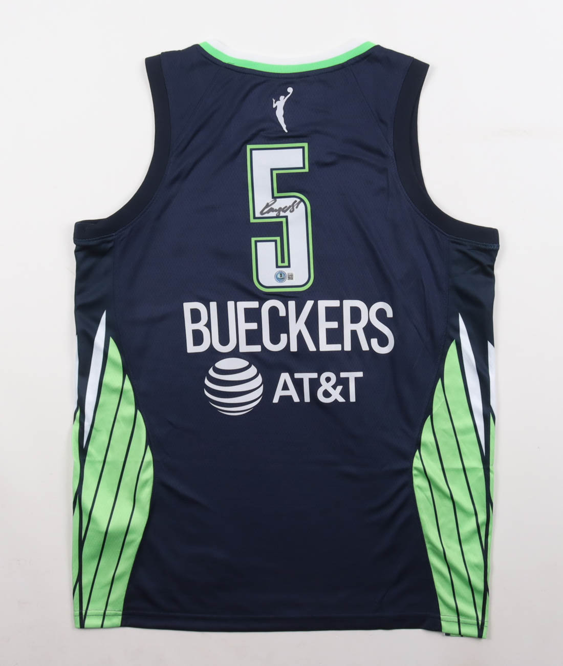 Nike authentic jersey with everything pressed on, size 48. Hand-signed by Paige Bueckers (Dallas Wings).