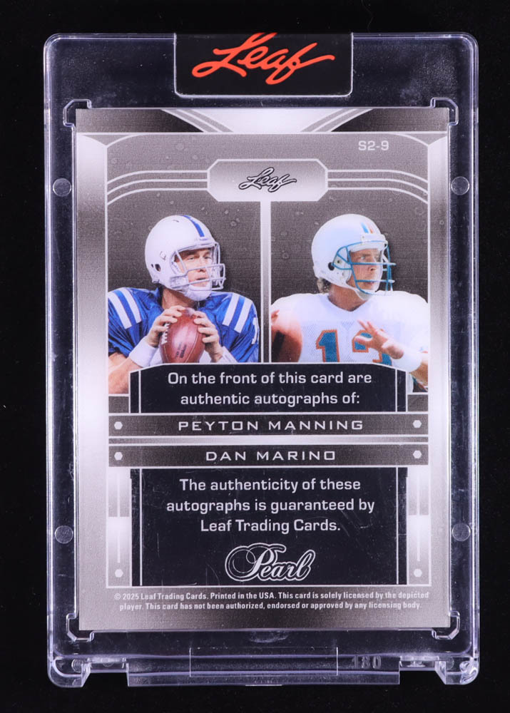Peyton Manning / Dan Marino 2025 Leaf Pearl Signatures 2 Platinum #S29 #2/5