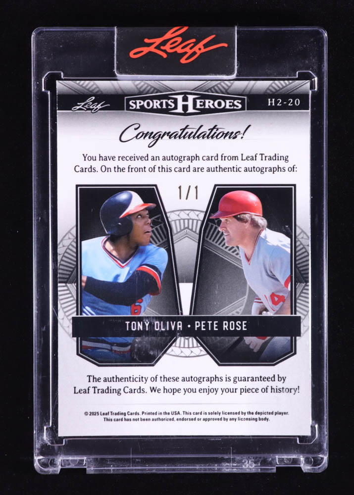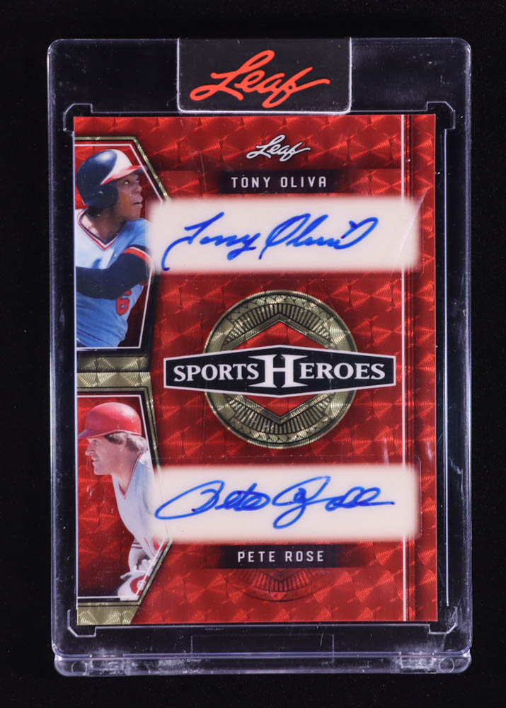 Tony Oliva / Pete Rose 2025 Leaf Sports Heroes Dual Signatures Super Prismatic Red #H220 #1/1