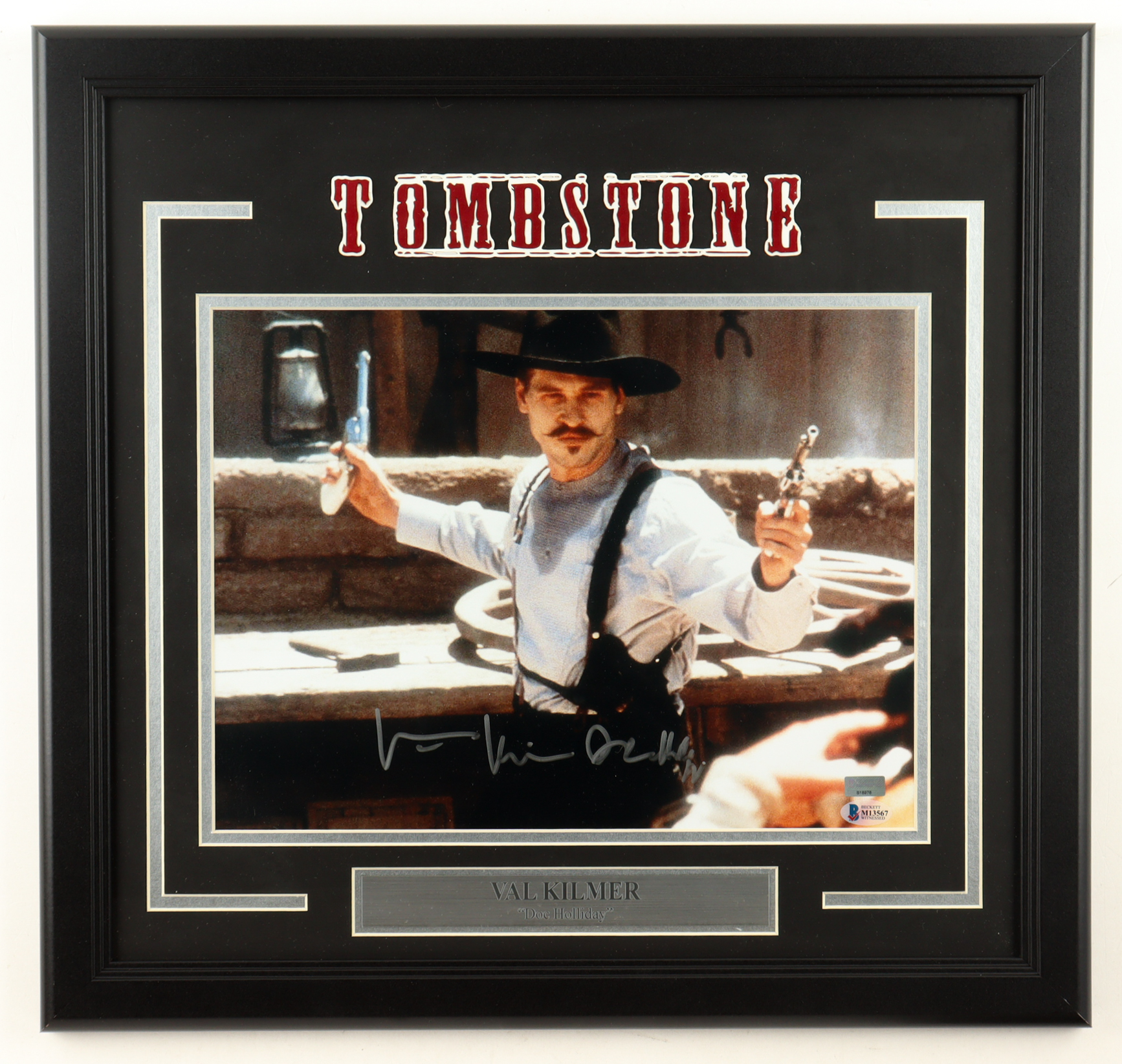 Custom frame measures 19” x 20” in size and features a photo that has been hand-signed and inscribed by Val Kilmer (Doc Holliday).