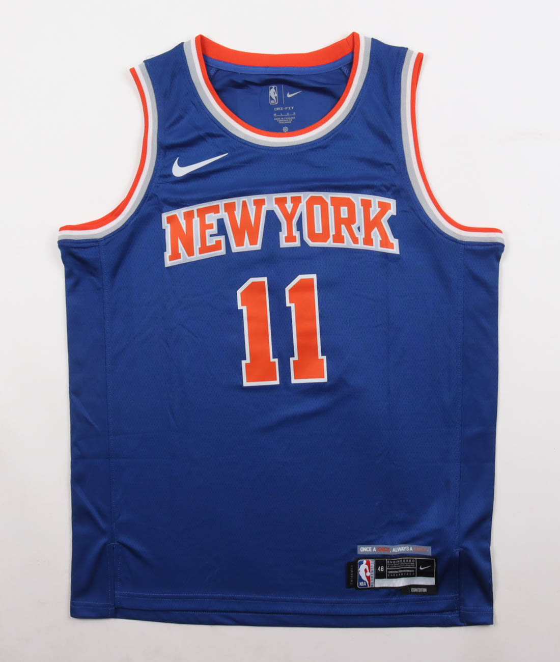 Nike jersey with everything pressed on, size 48. Hand-signed by Jalen Brunson (New York Knicks).