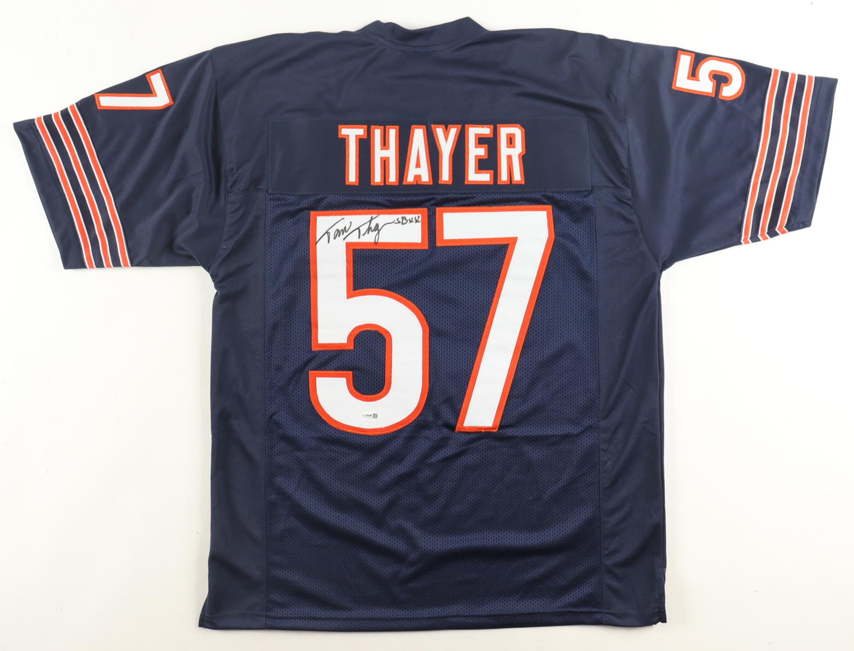 Custom jersey with everything sewn on, size XL. Hand-signed and inscribed by Tom Thayer.