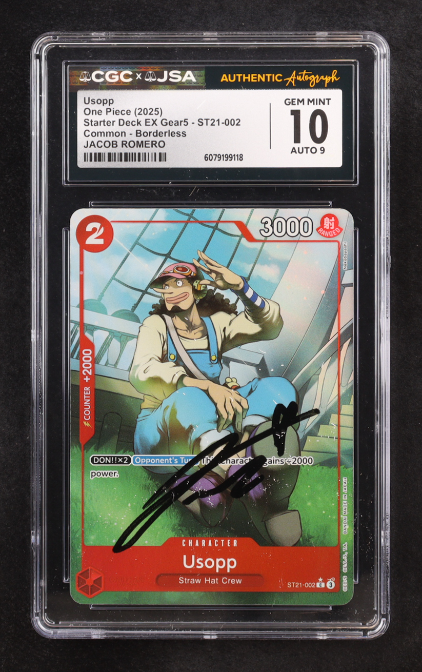Jacob Romero Signed 2025 Usopp One Piece Card Game Starter Deck EX Gear 5 C Borderless #ST21-002 (CGC 10 | Autograph Graded CGC 9)