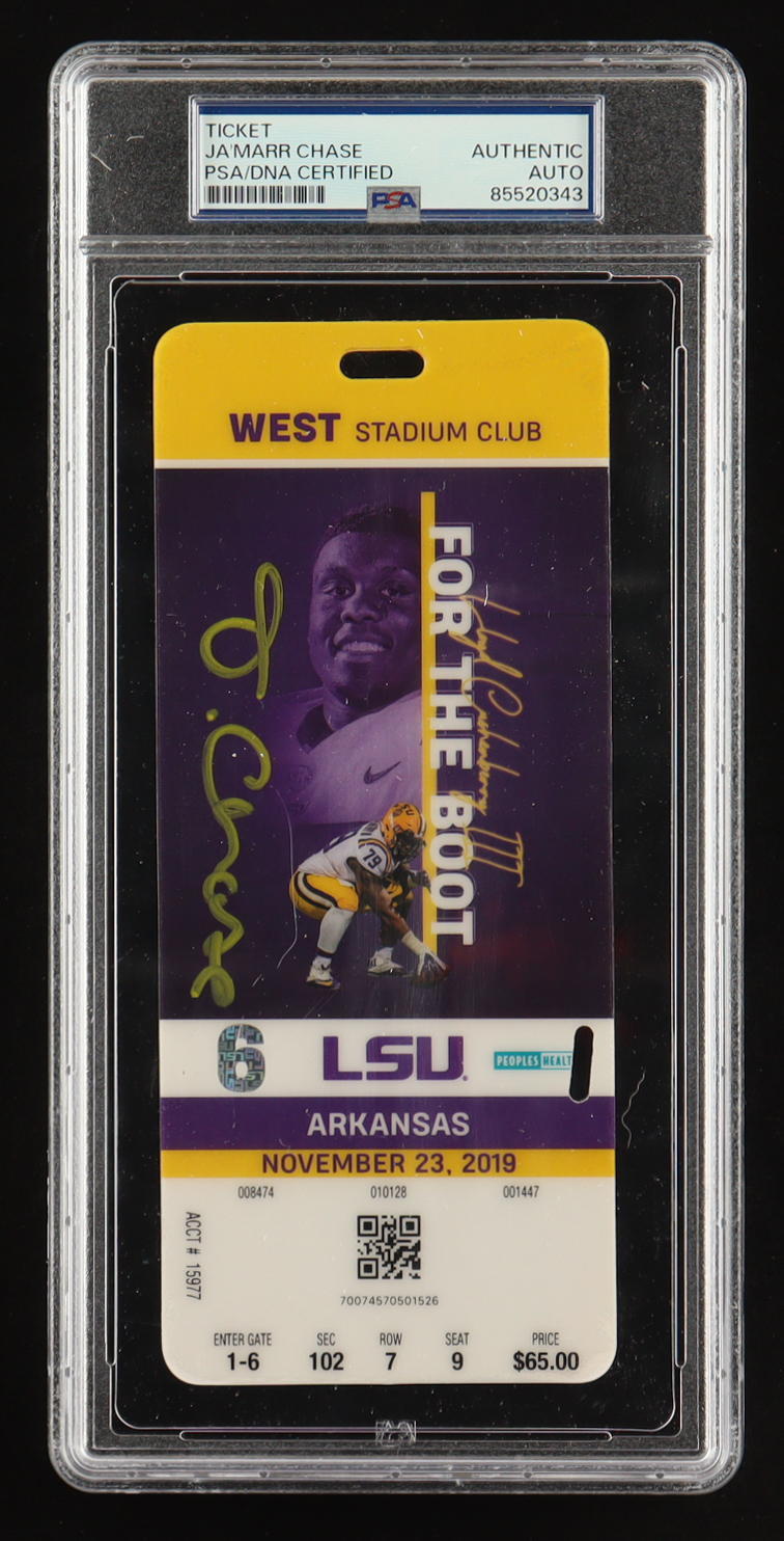 Ja'Marr Chase Signed 2019 LSU Tigers Game Ticket (PSA)