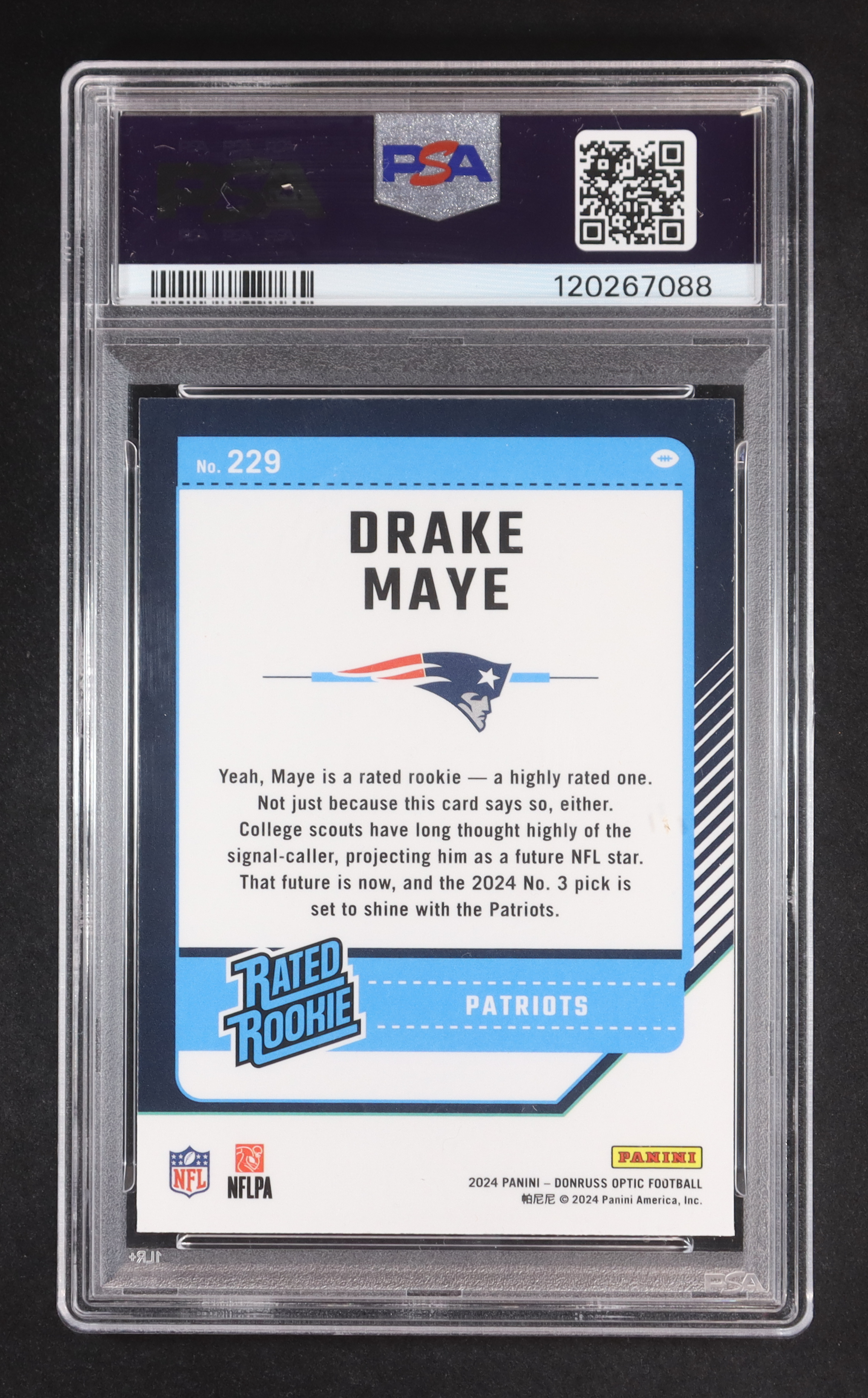 Drake Maye 2024 Donruss Optic RR #229 RC (PSA 8)