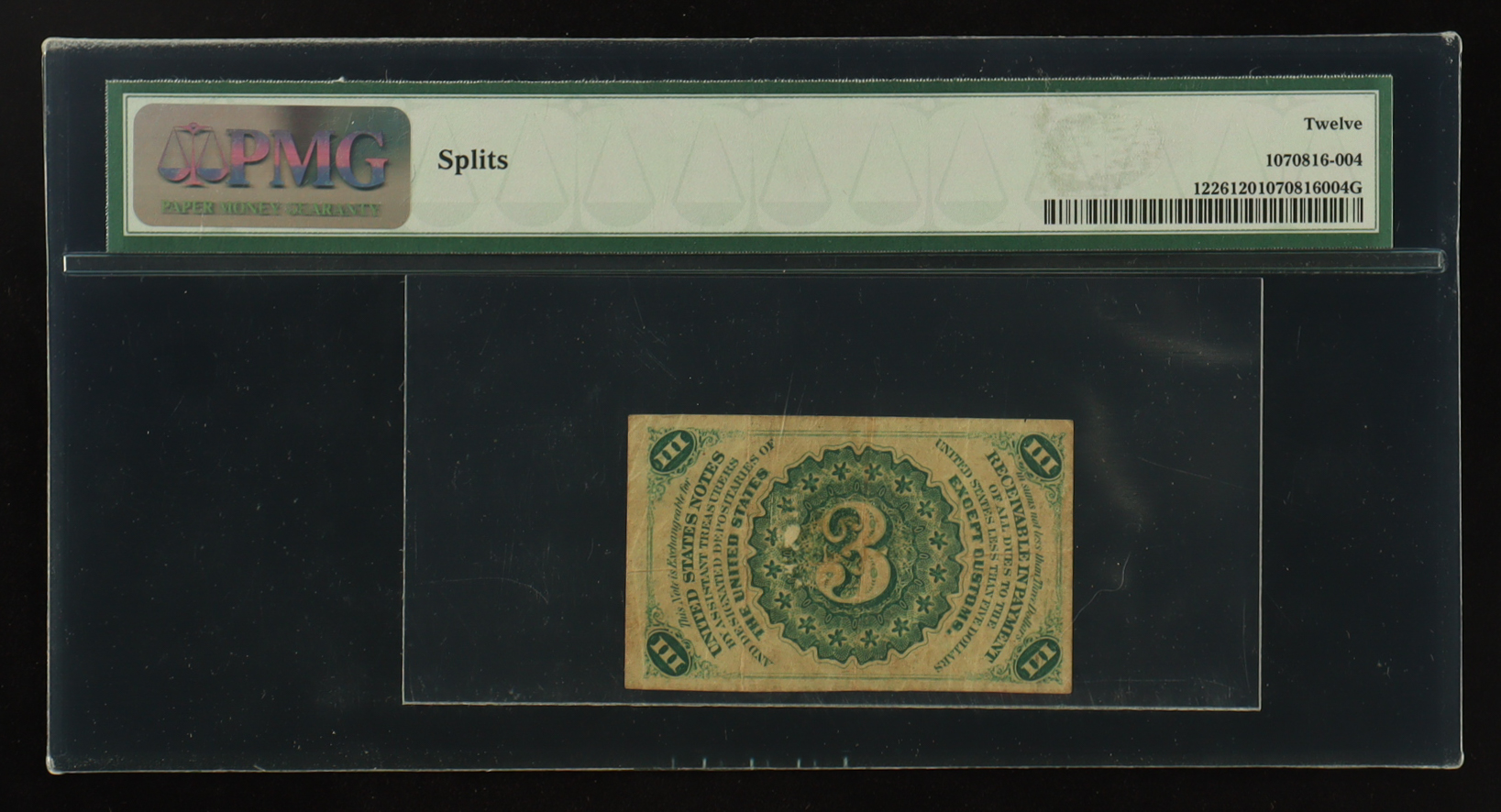 1863 U.S. 3 Cent Fractional Currency Note, 3rd Issue - Fr.1226 Light Background - Portrait George Washington (PMG FINE 12)