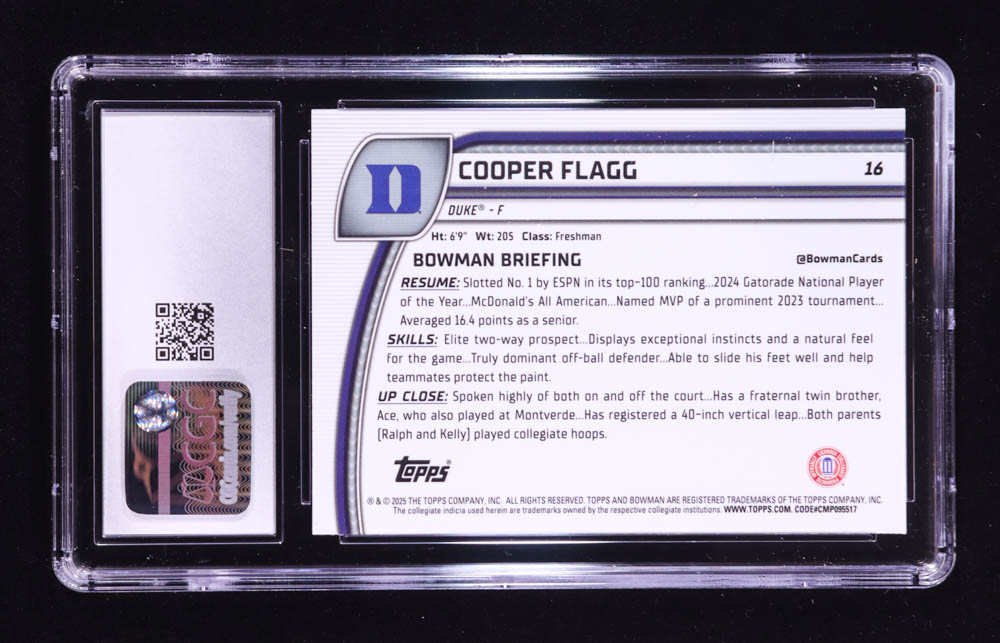 Cooper Flagg 2024-25 Bowman Chrome University #16 RC (CGC 10)
