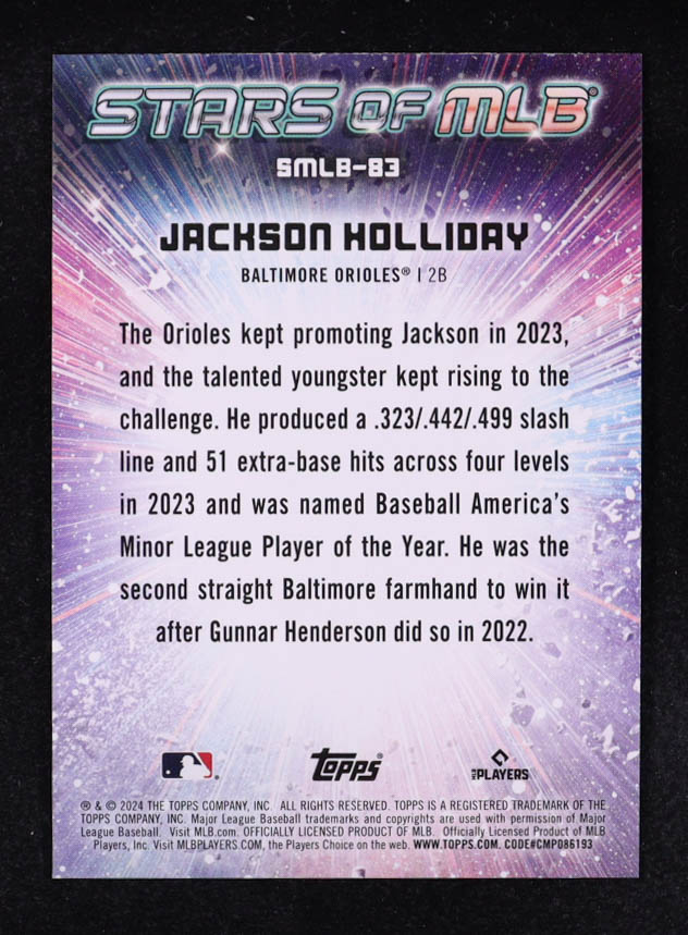 Jackson Holliday 2024 Topps Stars of MLB #SMLB83 RC