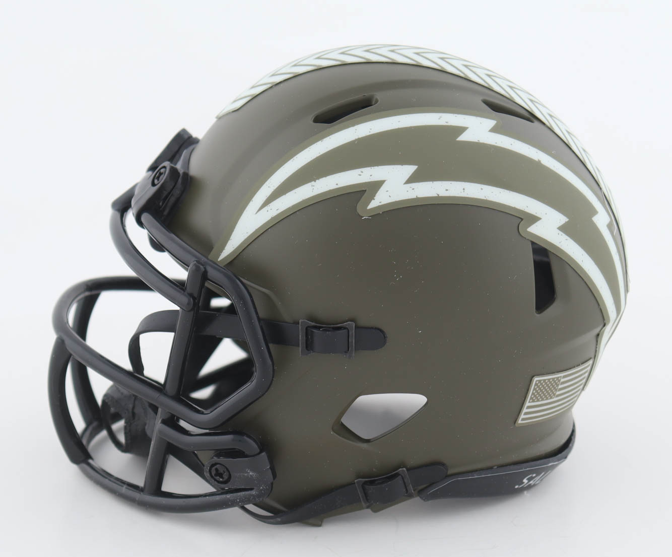 Riddell San Diego Chargers Salute To Service Alternate Speed Mini Helmet. Hand-signed by Kenneth Murray.