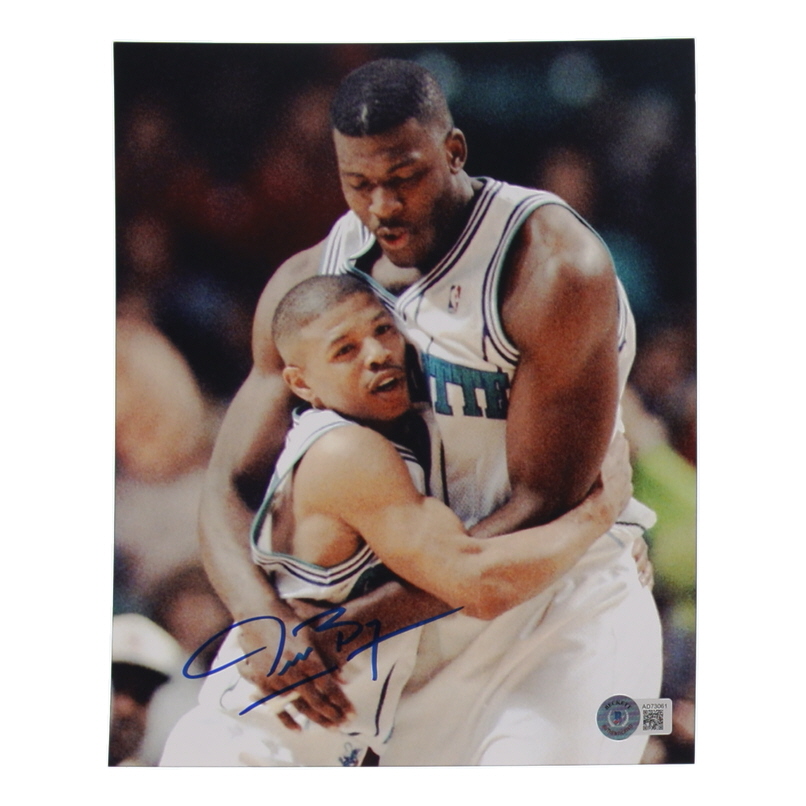 Photo measures 8" x 10" in size and has been hand-signed by Muggsy Bogues (Charlotte Hornets).