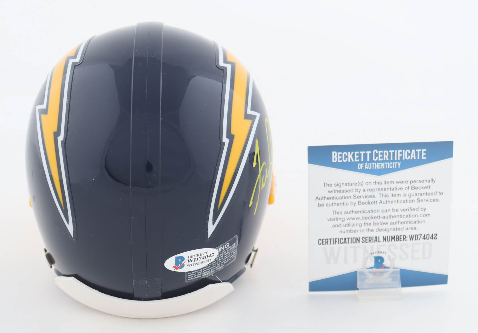 The autograph includes an official Beckett Authentication Services serially-numbered hologram and matching COA for authenticity purposes. The signing of this item was witnessed by Beckett.