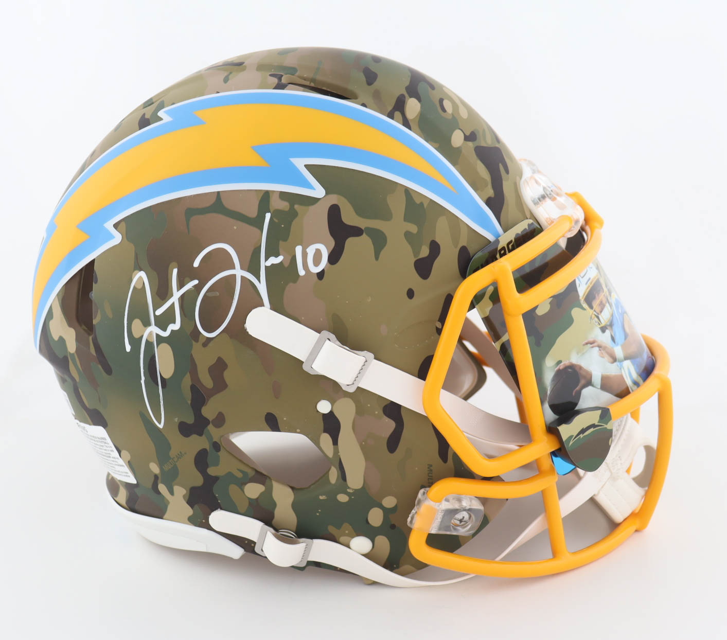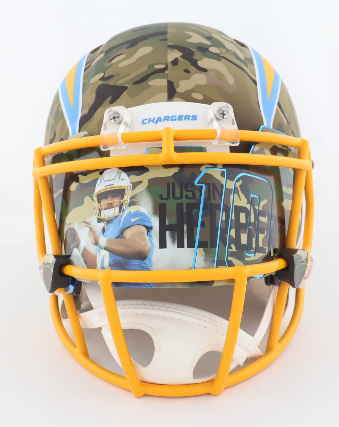 Justin Herbert Signed Chargers Full-Size Authentic On-Field Camo Alternate Speed Helmet with Custom Visor (Beckett)