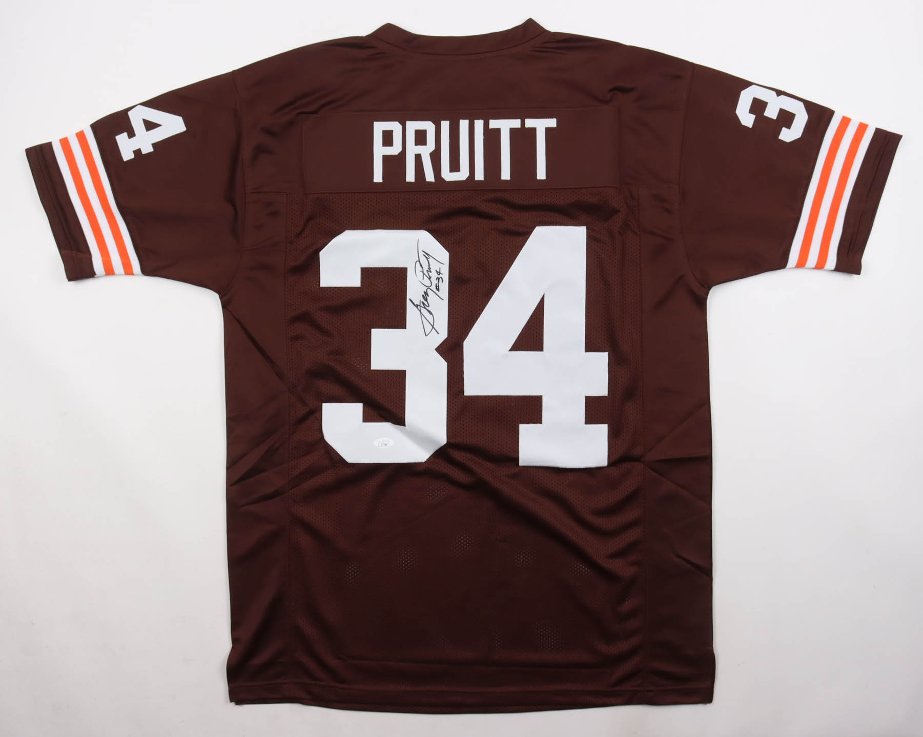 Custom jersey with everything sewn on, size XL. Hand-signed by Greg Pruitt.