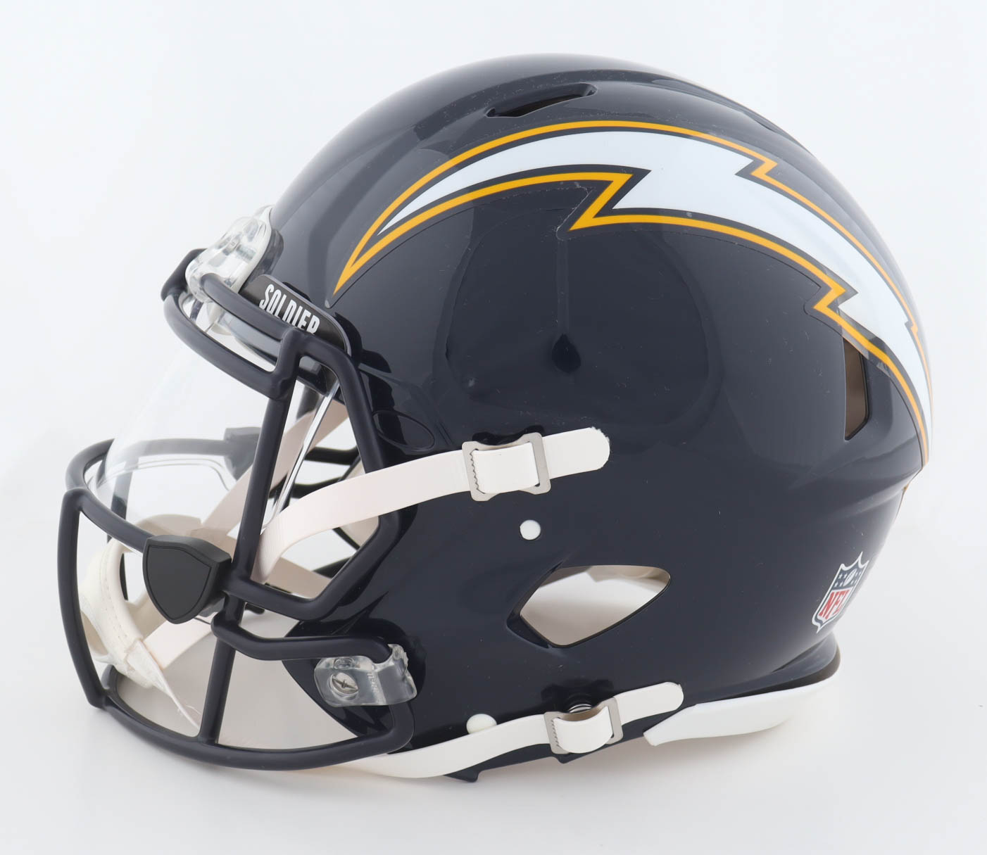 Riddell Los Angeles Chargers Full-Size Authentic On-Field speed helmet with custom visor has been hand-signed by Doug Flutie (HOF).
