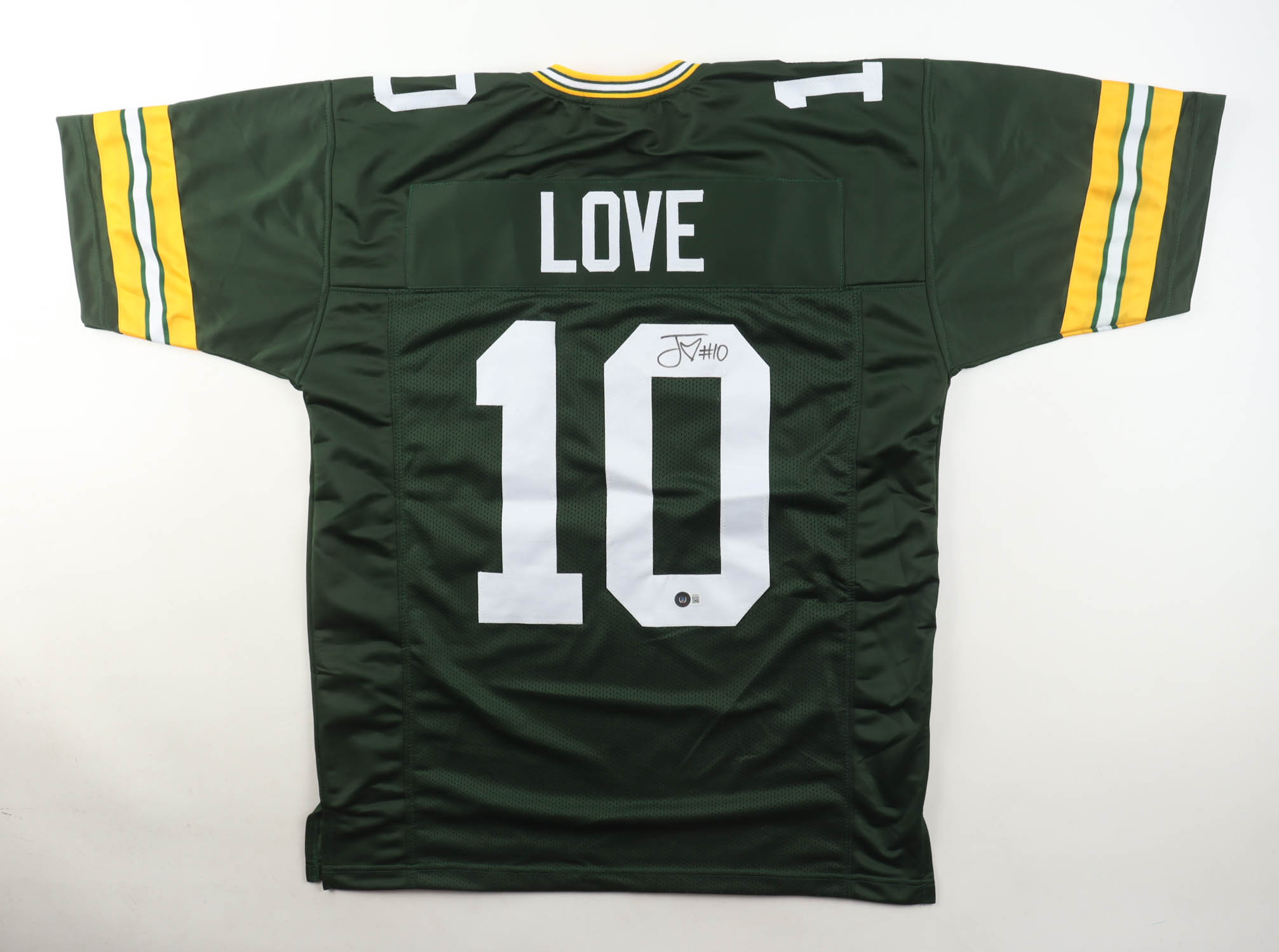 Custom jersey with everything sewn on, size XL. Hand-signed by Jordan Love (Green Bay Packers).