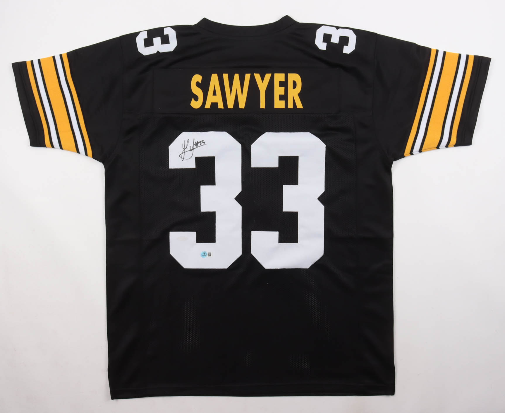Custom jersey. Everything sewn on, size XL. Hand-signed by Jack Sawyer. Please note, there is residue from a hologram on the reverse number.
