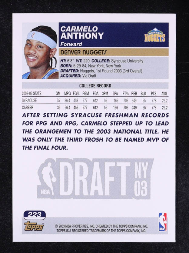 Carmelo Anthony 2003 Topps #223 RC