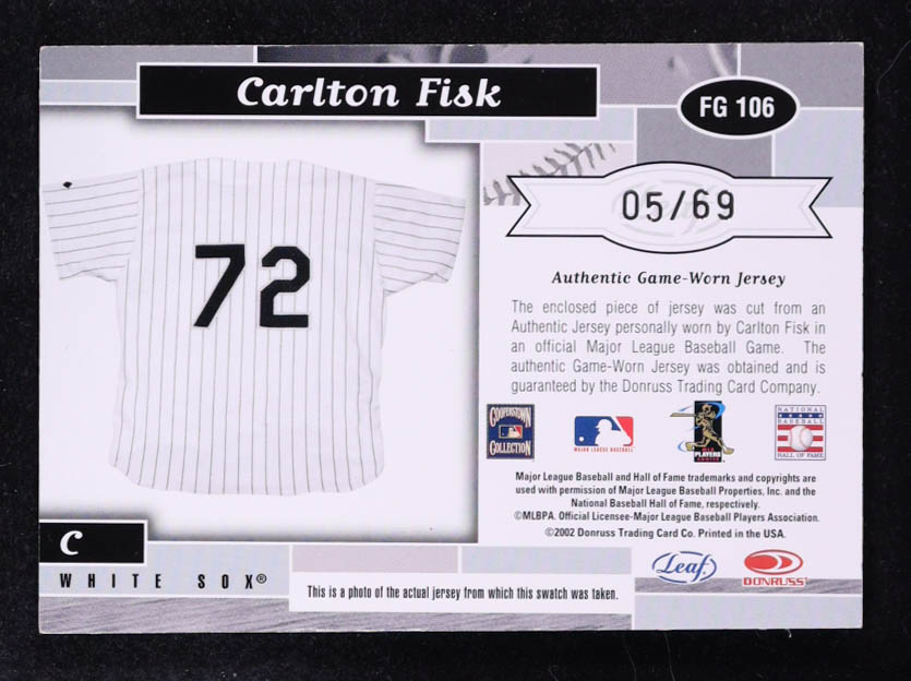 Carlton Fisk 2002 Donruss Fabric of the Game Jersey MEM #FG-106 #05/69