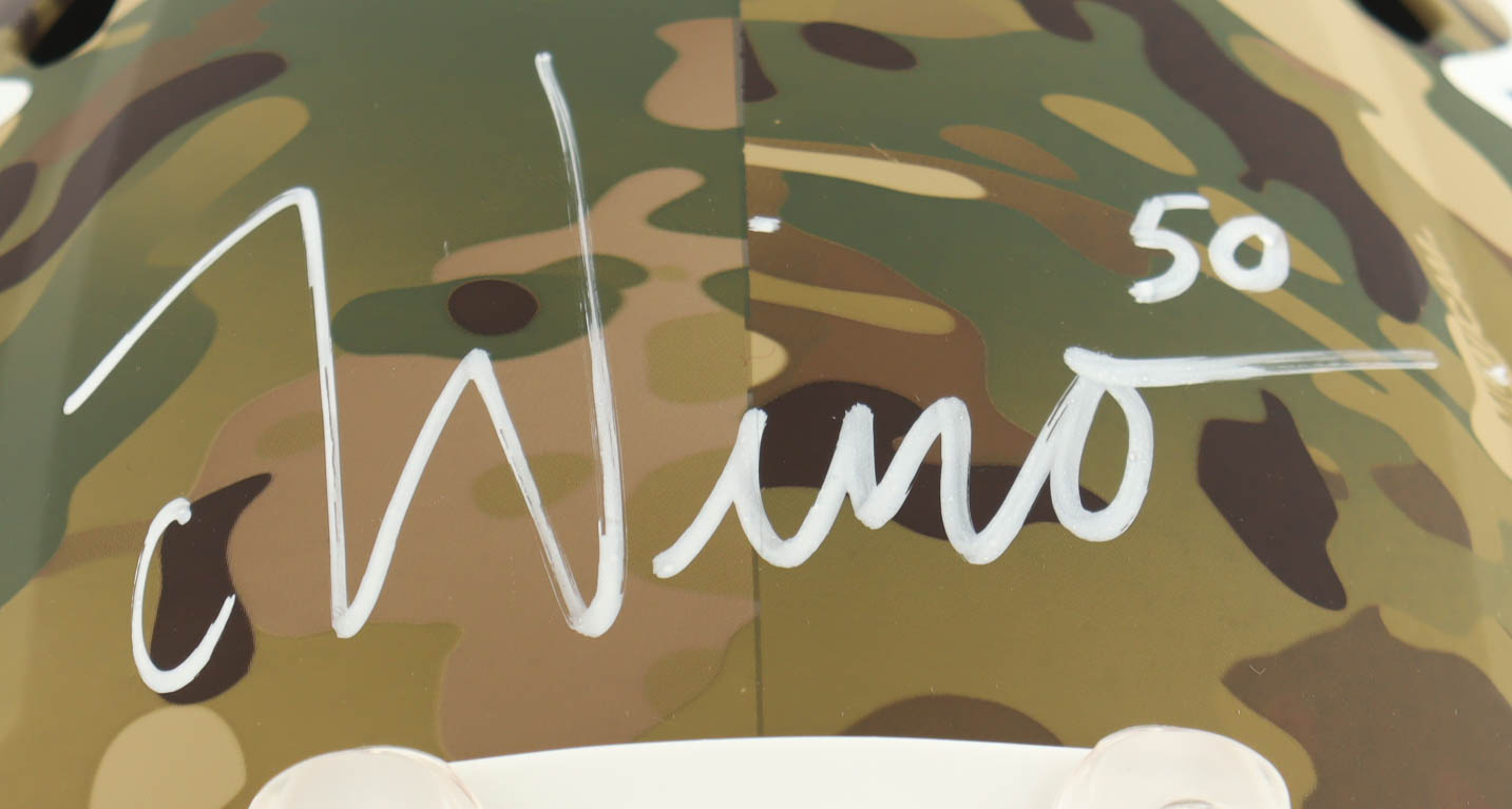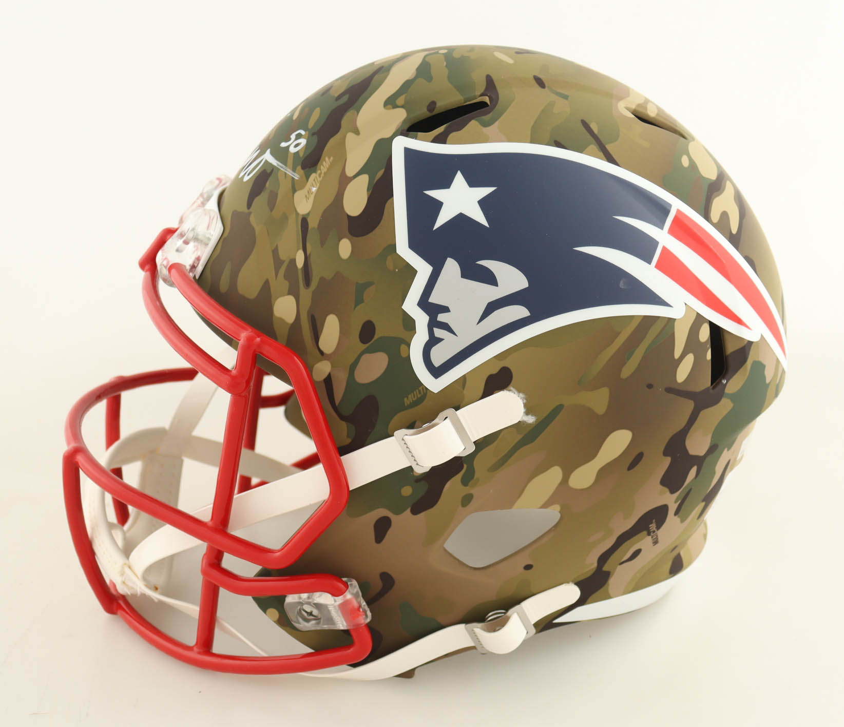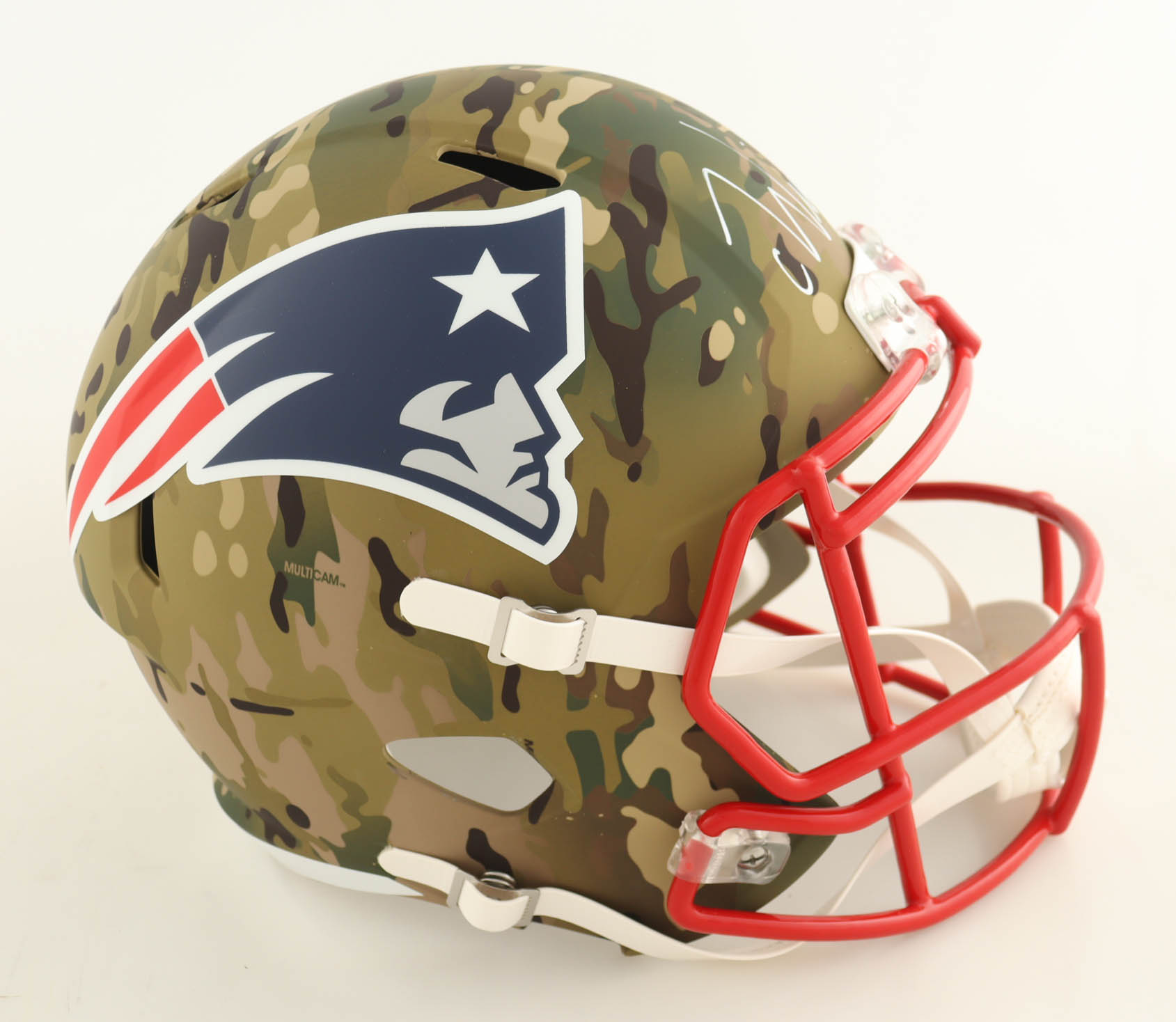 Riddell New England Patriots Full-Size Camo Alternate Speed replica helmet. Hand-signed by Chase Winovich.