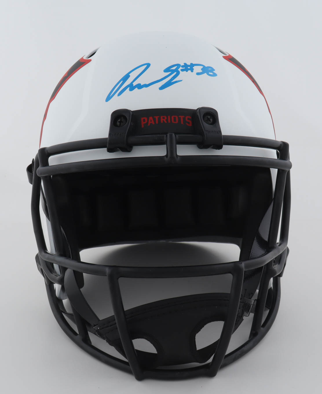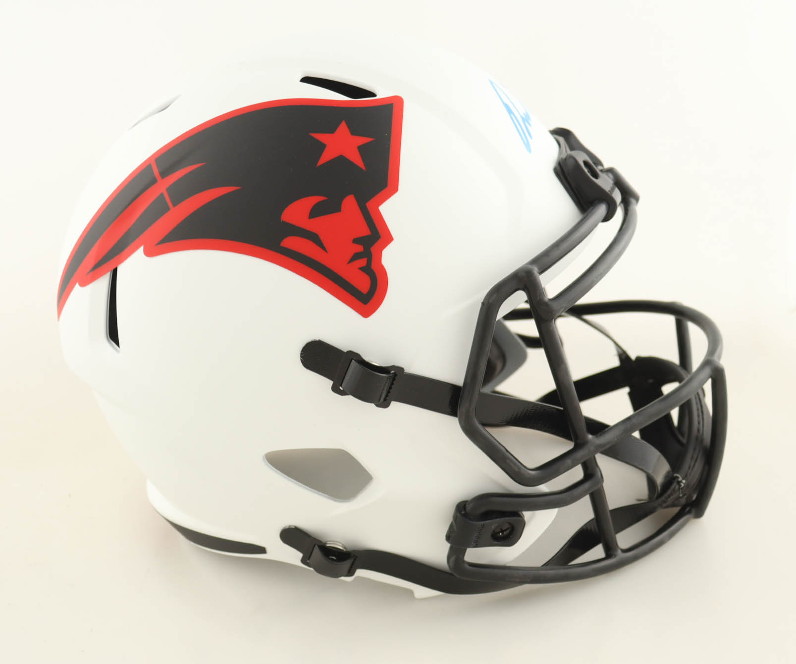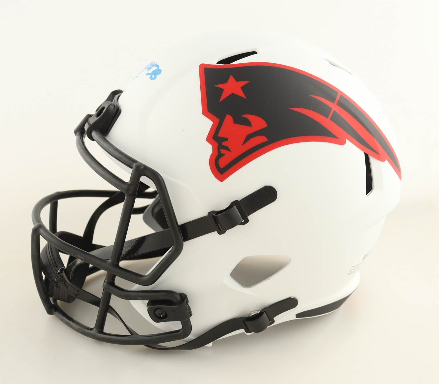 Riddell New England Patriots Full-Size Lunar Eclipse Speed replica helmet. Hand-signed by Rhamondre Stevenson.