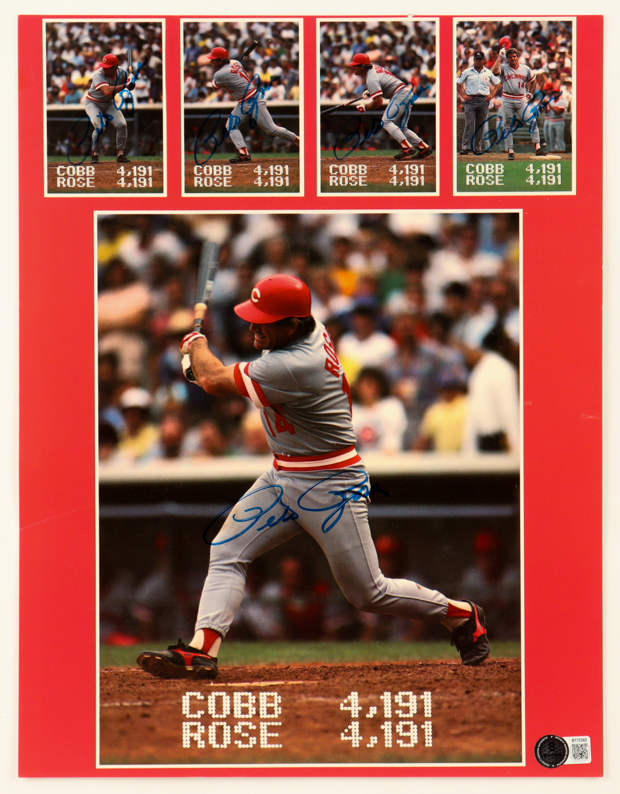Photo measures 11” x 14” in size and has been hand-signed by Pete Rose (D. 2024, Cincinnati Reds).