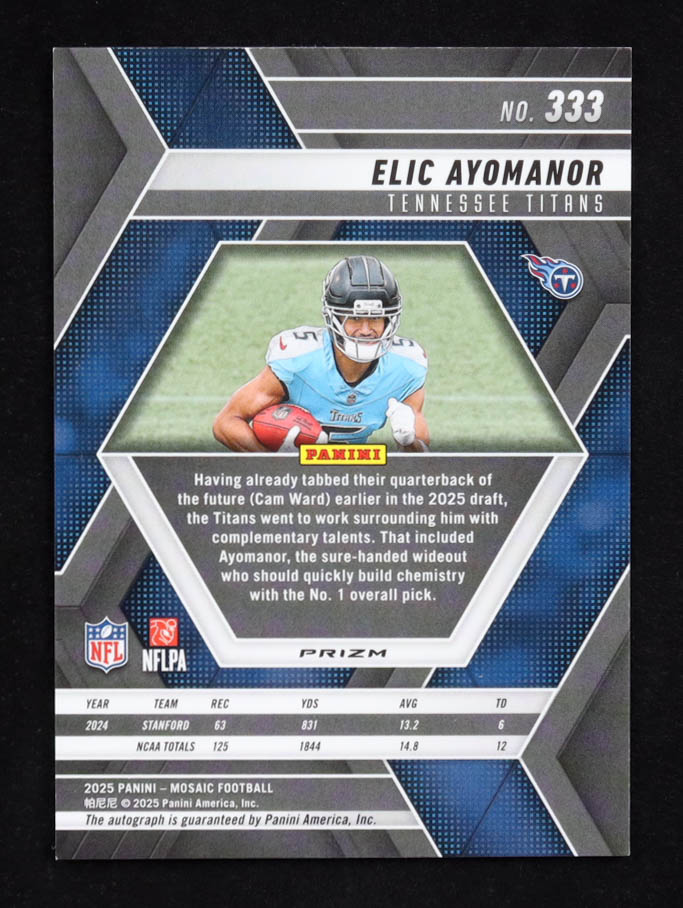 Elic Ayomanor 2025 Panini Mosaic Rookie Autographs Mosaic #333 RC