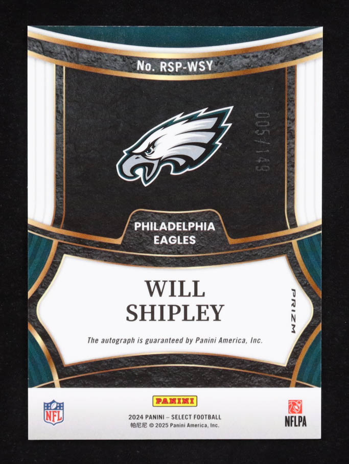 Will Shipley 2024 Select Rookie Signatures Prizm Blue #28 RC #5/149