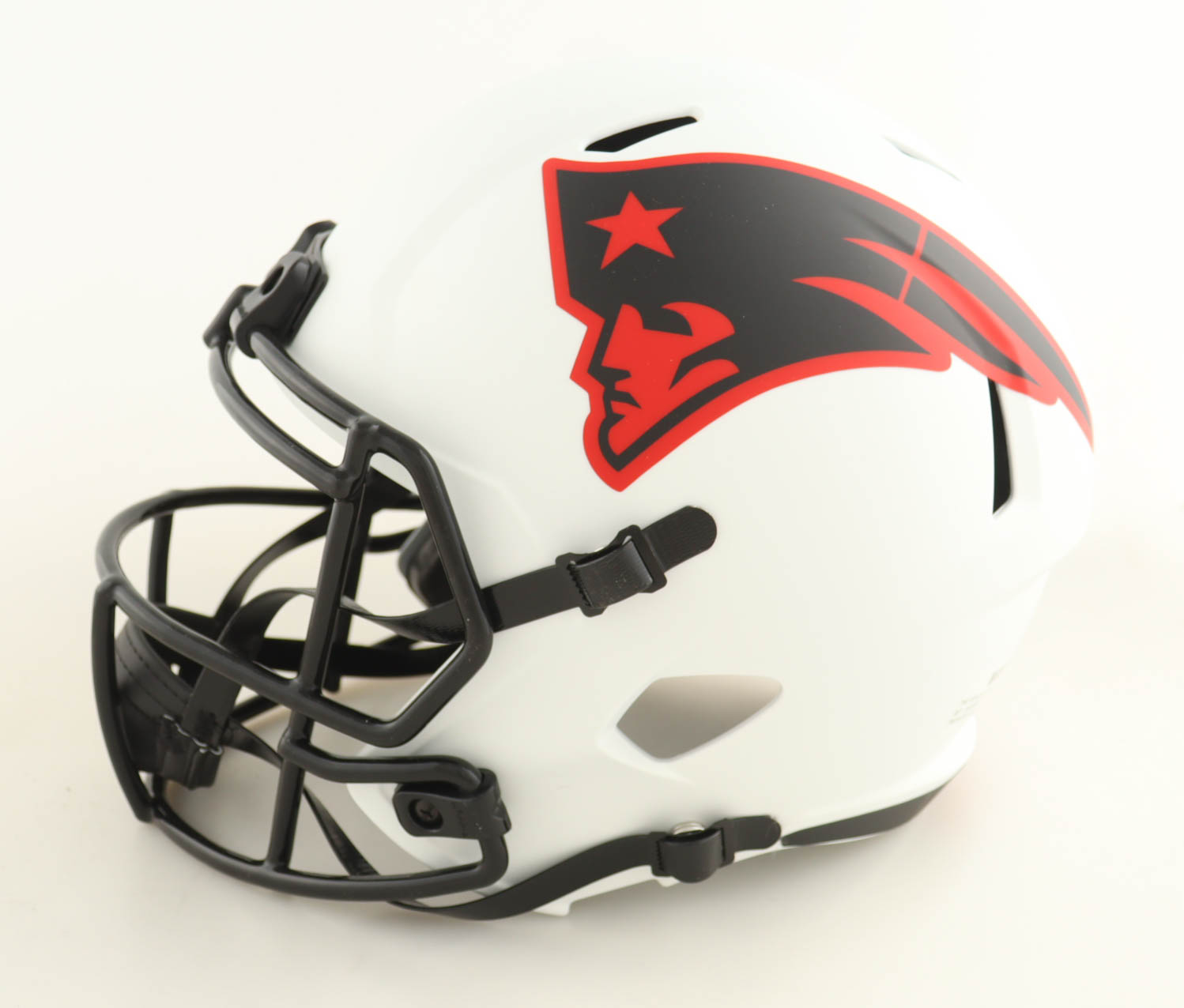 Riddell New England Patriots Full-Size Lunar Eclipse Alternate Speed replica helmet. Hand-signed by Jarrett Stidham.