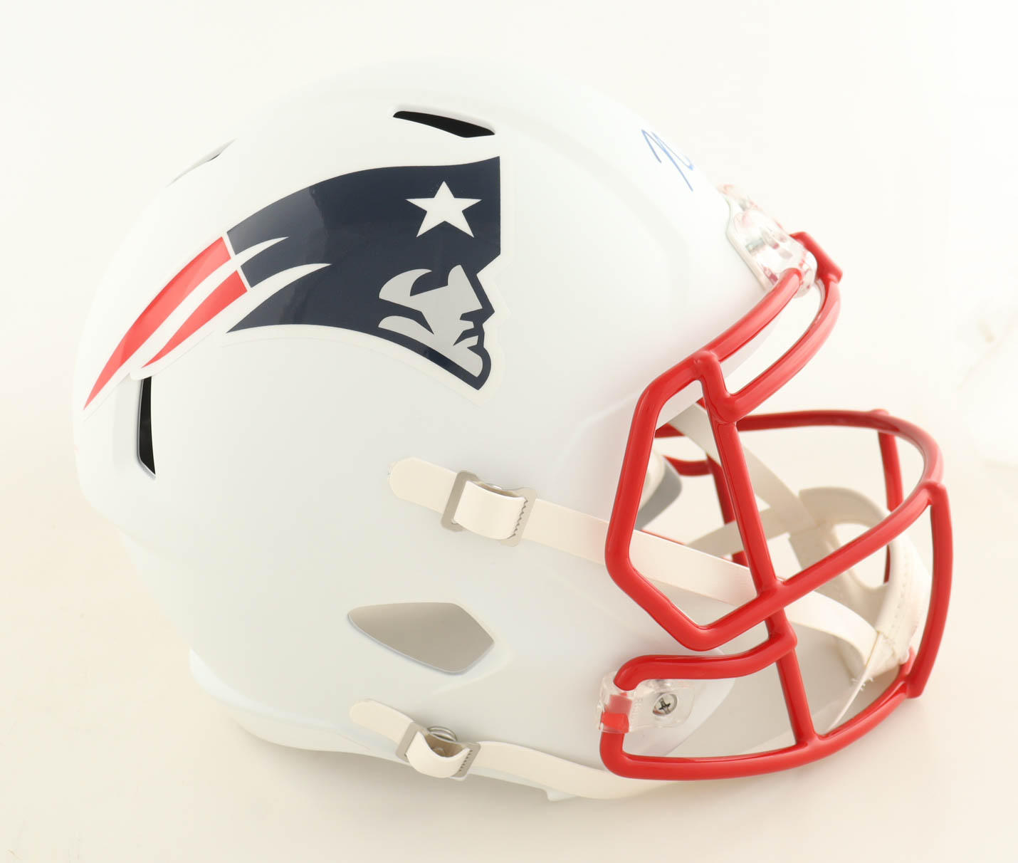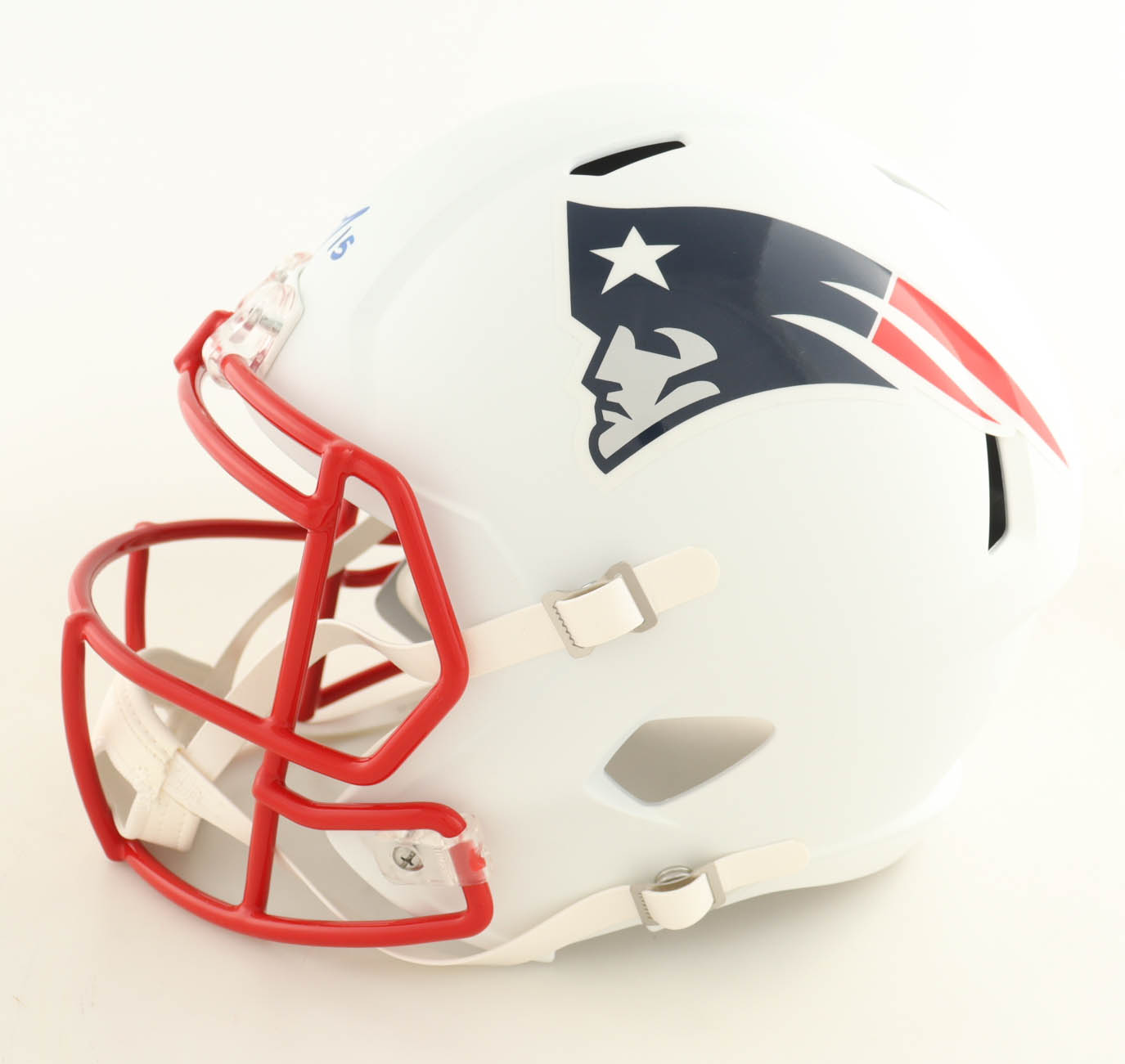 Riddell New England Patriots Full-Size Flat White Alternate Speed replica helmet. Hand-signed by N'Keal Harry.
